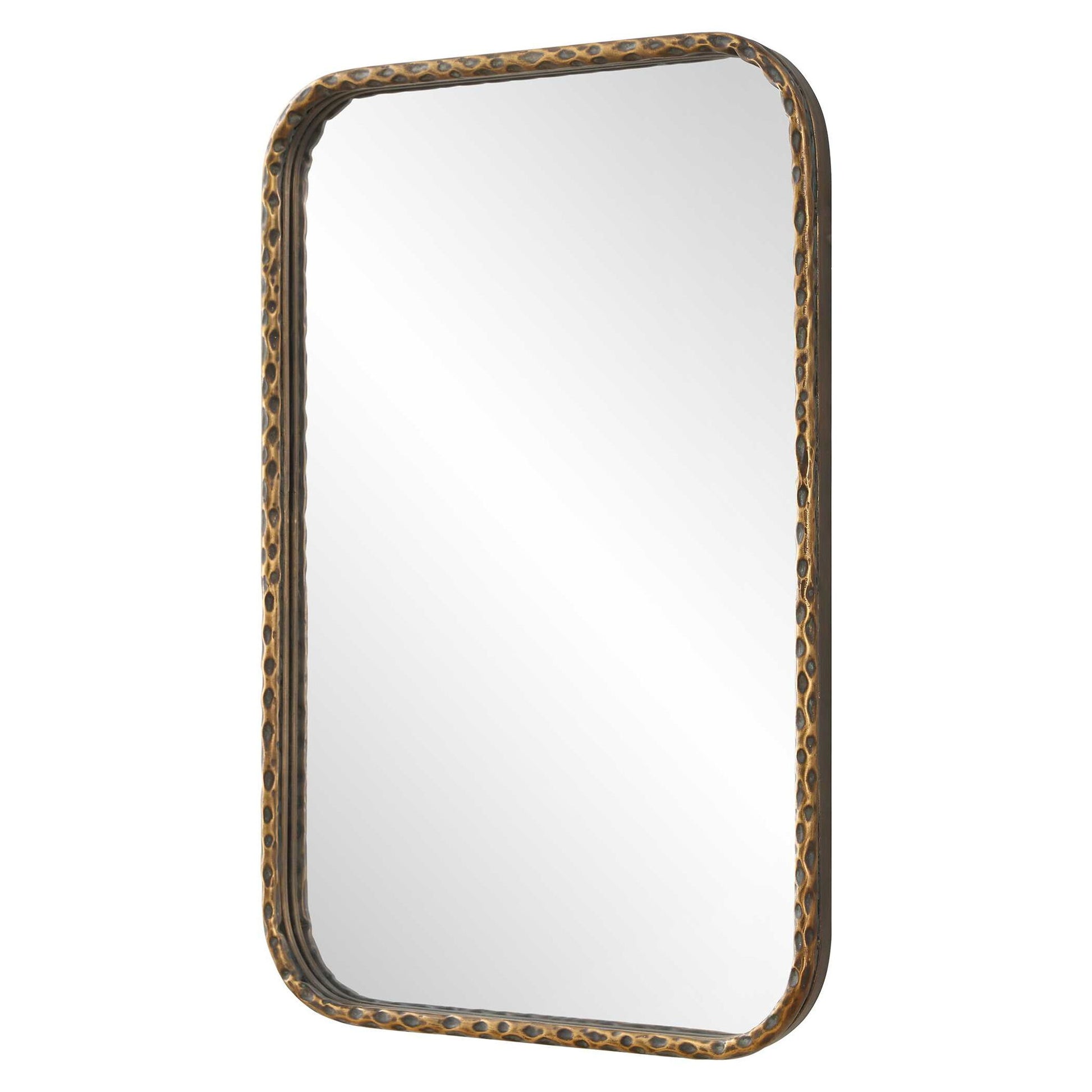 This Vanity Mirror Features A Hammered Textured Iron Frame Finished In An Aged Bronze With Intricately Knotted Detailing Adding An Organic Touch To An Otherwise Simple Silhouette. May Be Hung Horizontal Or Vertical.