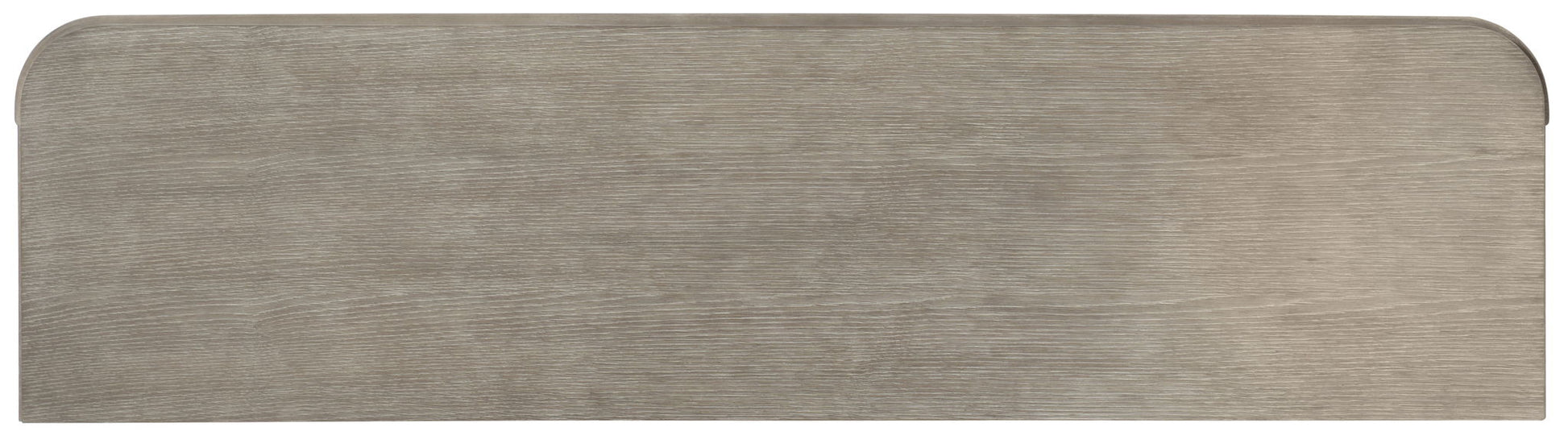 In a softly rounded form, the Affinity Server combines a greige sand-blasted finish on Quartered Oak Veneers with cream and pewter bar pulls and flared legs. With two doors, there is one adjustable wood shelf behind each door. Five drawers. The top left drawer has drop-in felt silverware and the top right drawer has a drop-in felt liner. The bottom drawer is cedar lined.
