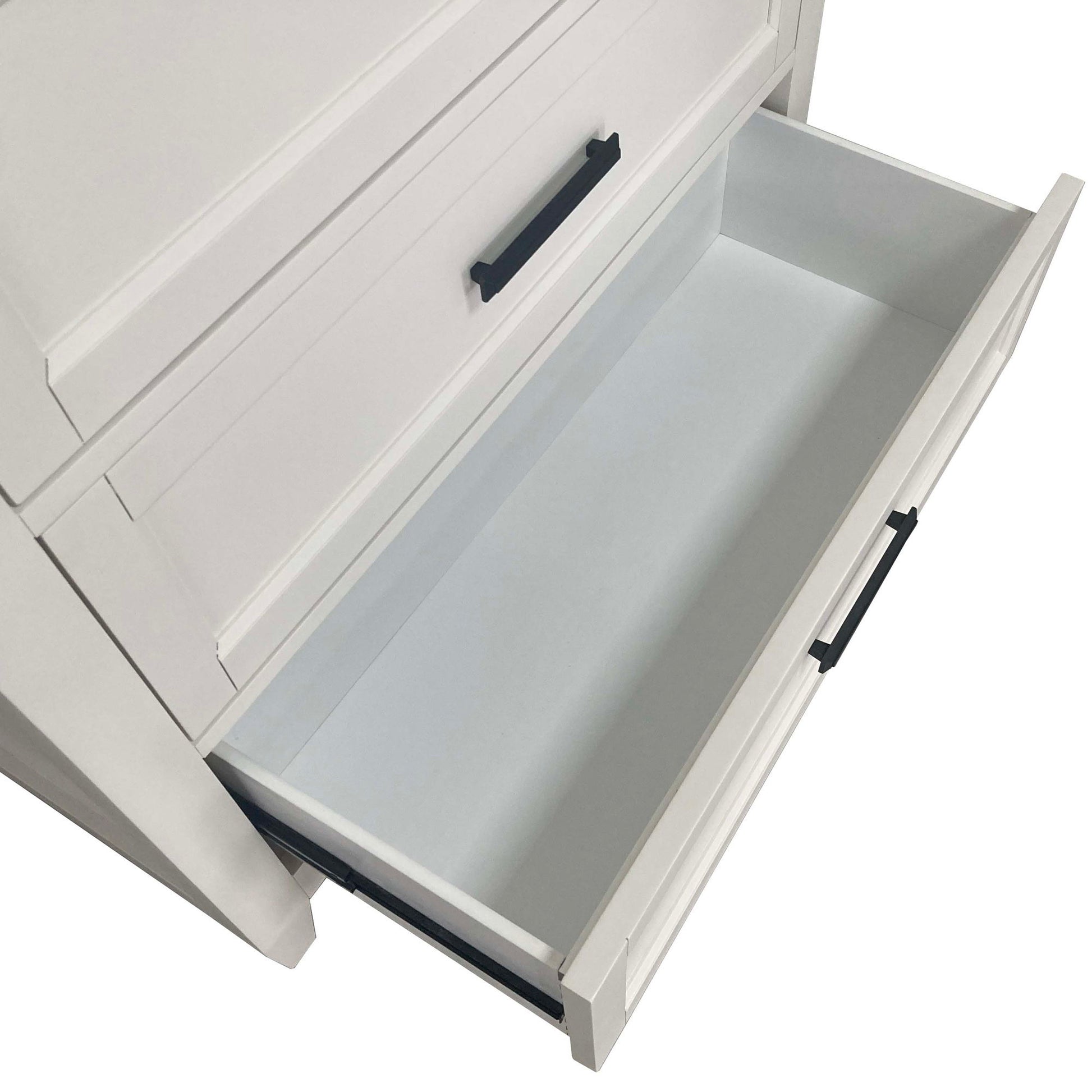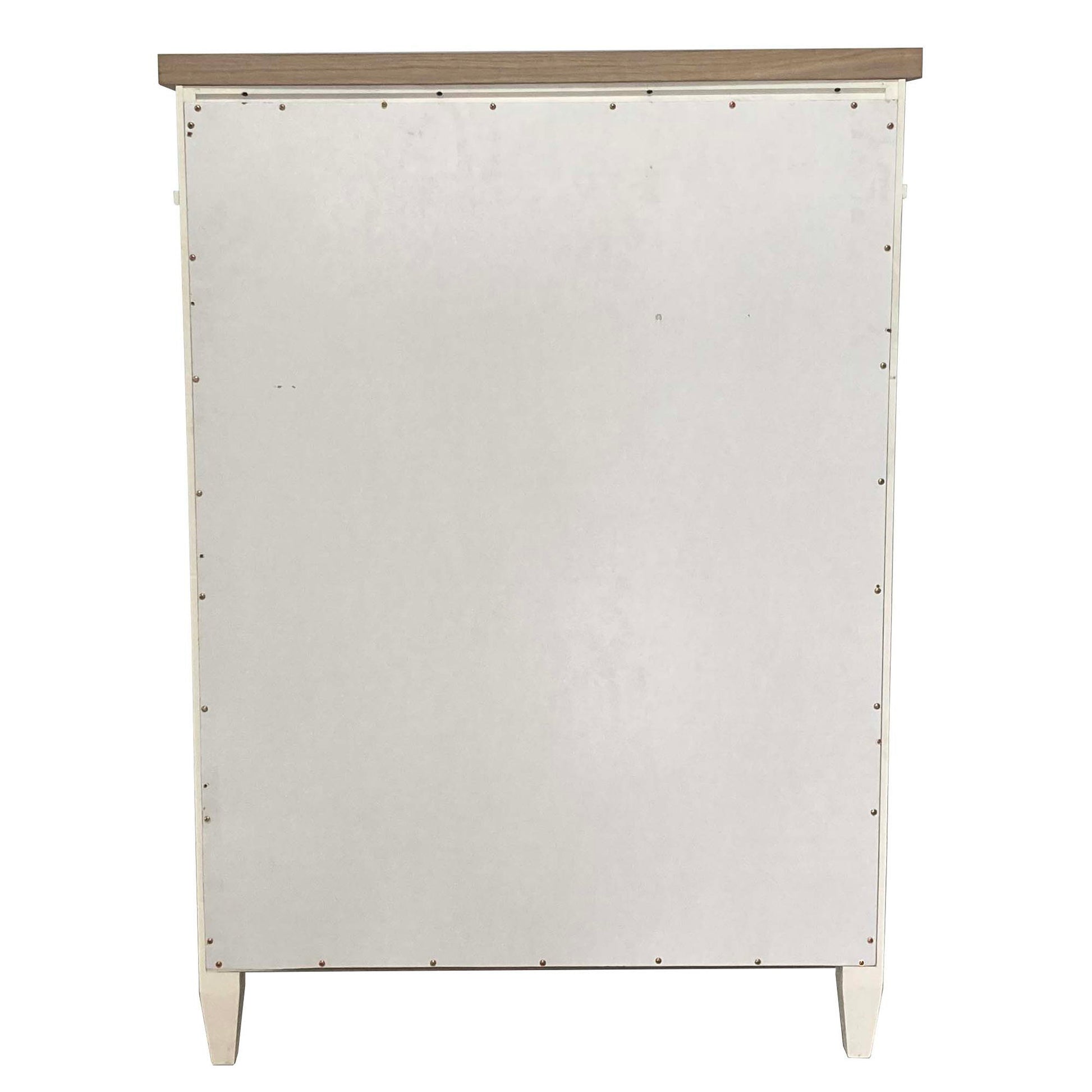 This piece is expertly crafted from poplar solids and birch veneers with and oak veneer top and boasts a fresh, hand-painted cotton finish with a contrasting weathered natural top that exudes timeless charm. Solid-metal custom hardware in and authentic burnished bronze finish adds a touch of elegance to this piece. The tapered legs create and eye-catching silhouette, making this chest and elegant and functional addition to any bedroom. This chest pairs beautifully with Americana Modern beds, making it the perfect addition to your bedroom décor.