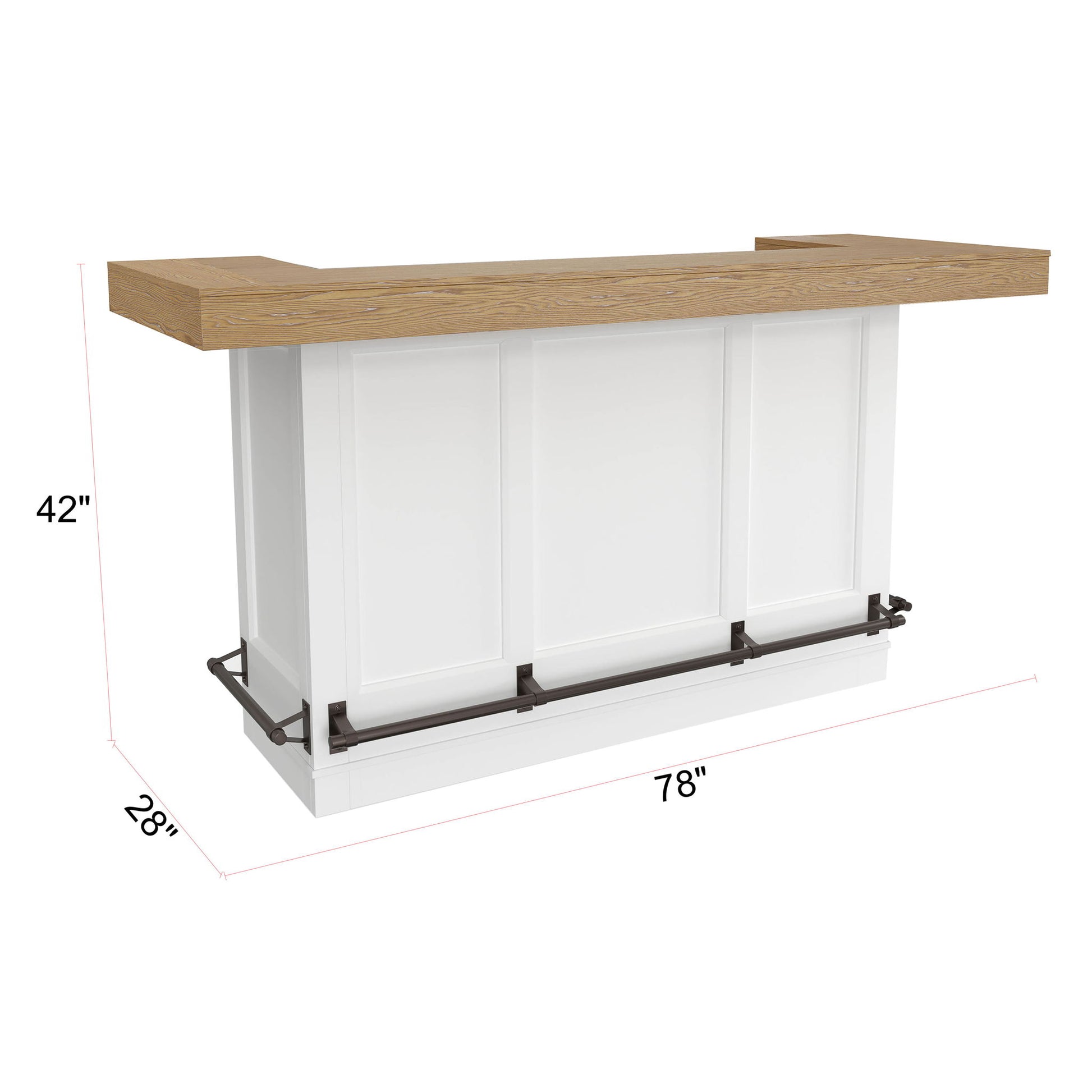 Our Americana Modern's Grand Casual Dining Bar combines function and welcoming presences to your space. Easygoing classic hand-painted Cotton finish with contrasting weathered natural top offers a timeless charm. Seating for up to 5 makes this bar fun and functional. Solid-metal custom hardware and substantial metal footrest in authentic Burnished bronze finish give a beautiful contrast and strong presence. Quartz top insert makes and ideal surface for food preparation and serving. Gathering around this bar will be fun and functional.