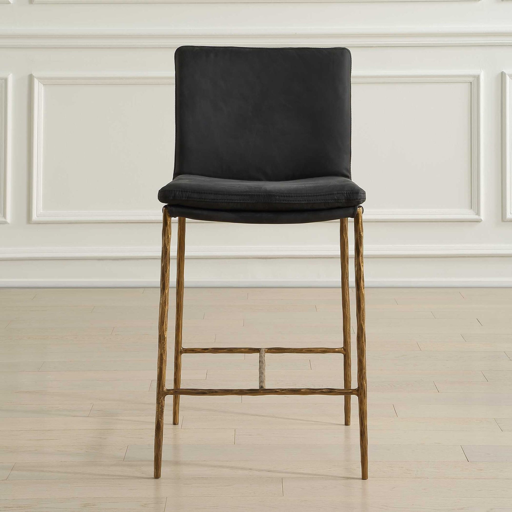 A Gently Padded And Sloped Seat Featuring Character Distressed Top Grain Leather, Accented By Hand Forged Chiseled Iron Base. Because Leather Is A Natural Product, Both Texture And Color Will Vary Slightly, Enhancing Leather's Uniqueness.