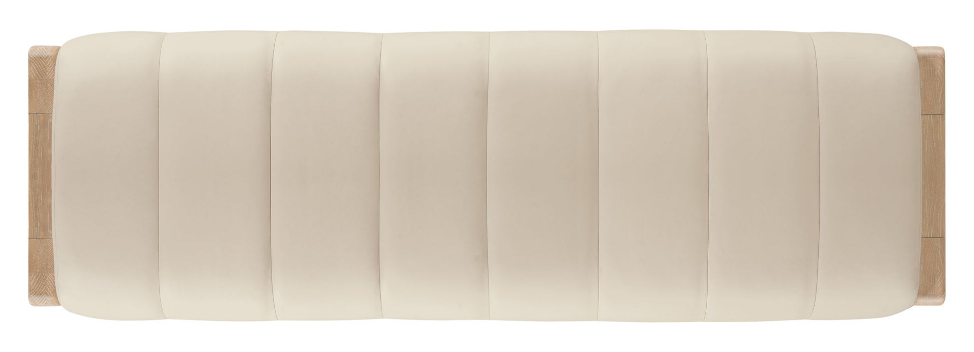 The Banyon Bay Bench combines natural materials with a contemporary design. Crafted from oak solids, oak veneers, and finished top-grain leather in a sunbleached tone, this bench adds an element of modern sophistication to your bedroom. The multi-step finish, with wire-brushing and cerusing, enhances its texture. The bench features a long rectangle shape with open ends and a channeled leather seat, providing both comfort and style. It’s a versatile piece that can be placed at the foot of the bed or used as extra seating in a bedroom or hallway.