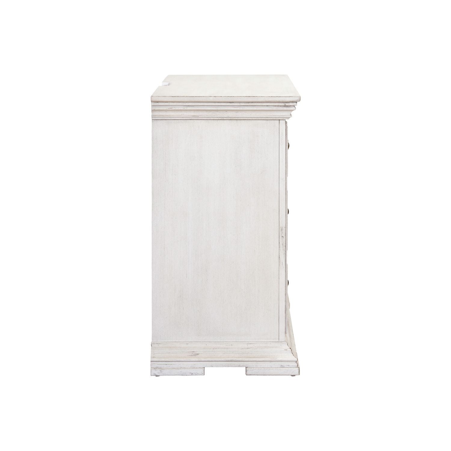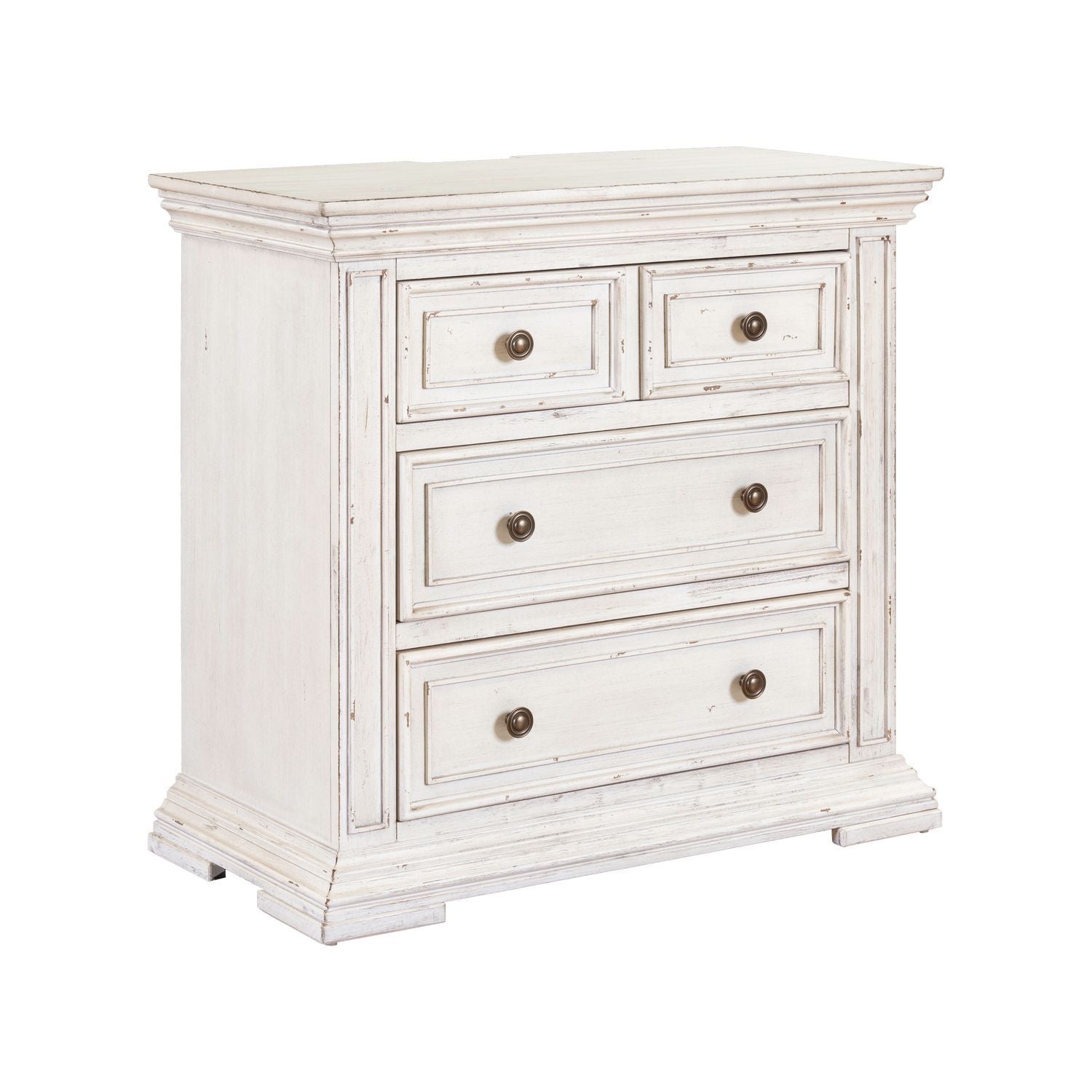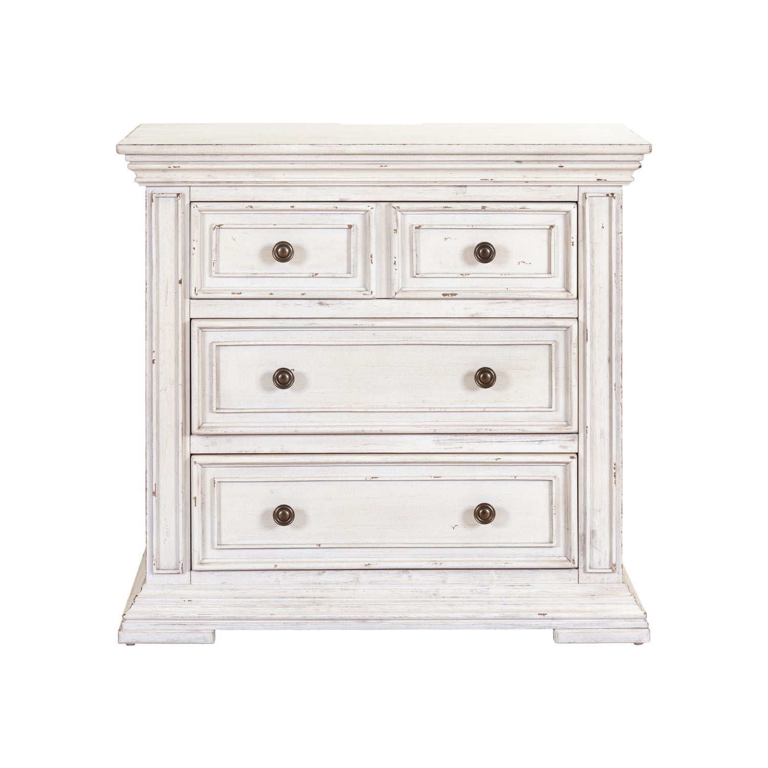 Incorporate this traditional, large scale bedside chest into your bedroom. The finish features heavy distressing, characterized by warm and intricate details. Enjoy the convenience of having a built-in charging station in the back of the night stand, featuring two USB ports and two outlets. The wood framed drawer fronts and block feet complete this traditional look, combing for a grand feel of the past with today's luxurious lifestyle.