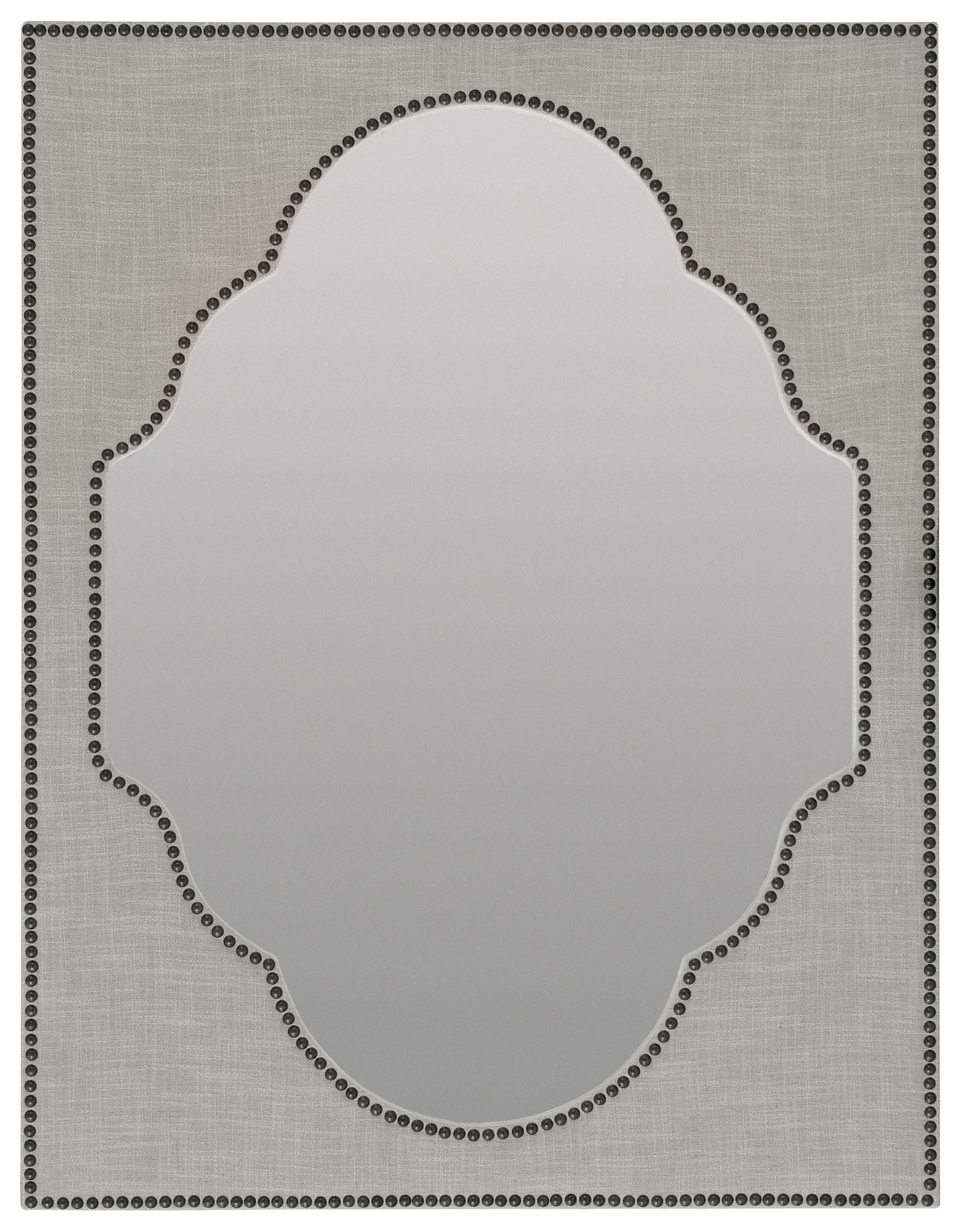 Tactile and eclectic, the Nourmand Mirror is wrapped in the soft gray Antwerp Linen and accented with decorative nailheads. Mirror comes complete with mirror hooks and wood brackets to attach to the dresser.
