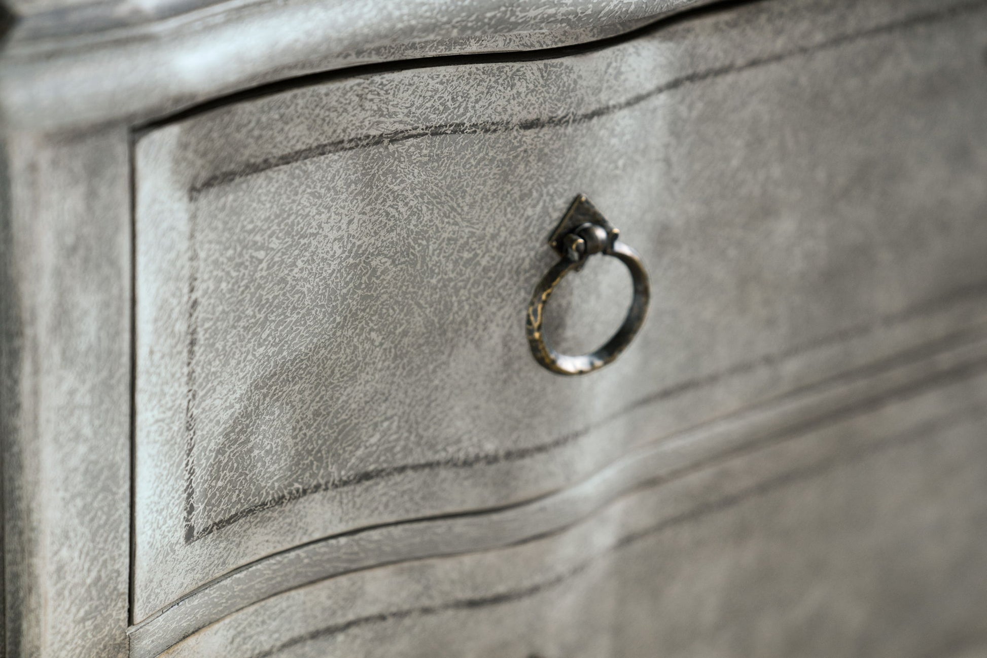 Inspired by the Belgian design aesthetic, the lyrical blend of blue toned neutrals in the Verbena Bachelor's Chest features the Stonewash finish, a play of blue, white and gray on a finely textured surface. With two drawers, there's a drop-in felt liner in the top drawer, cedar-lined bottom drawer and a touch dimmer switch.
