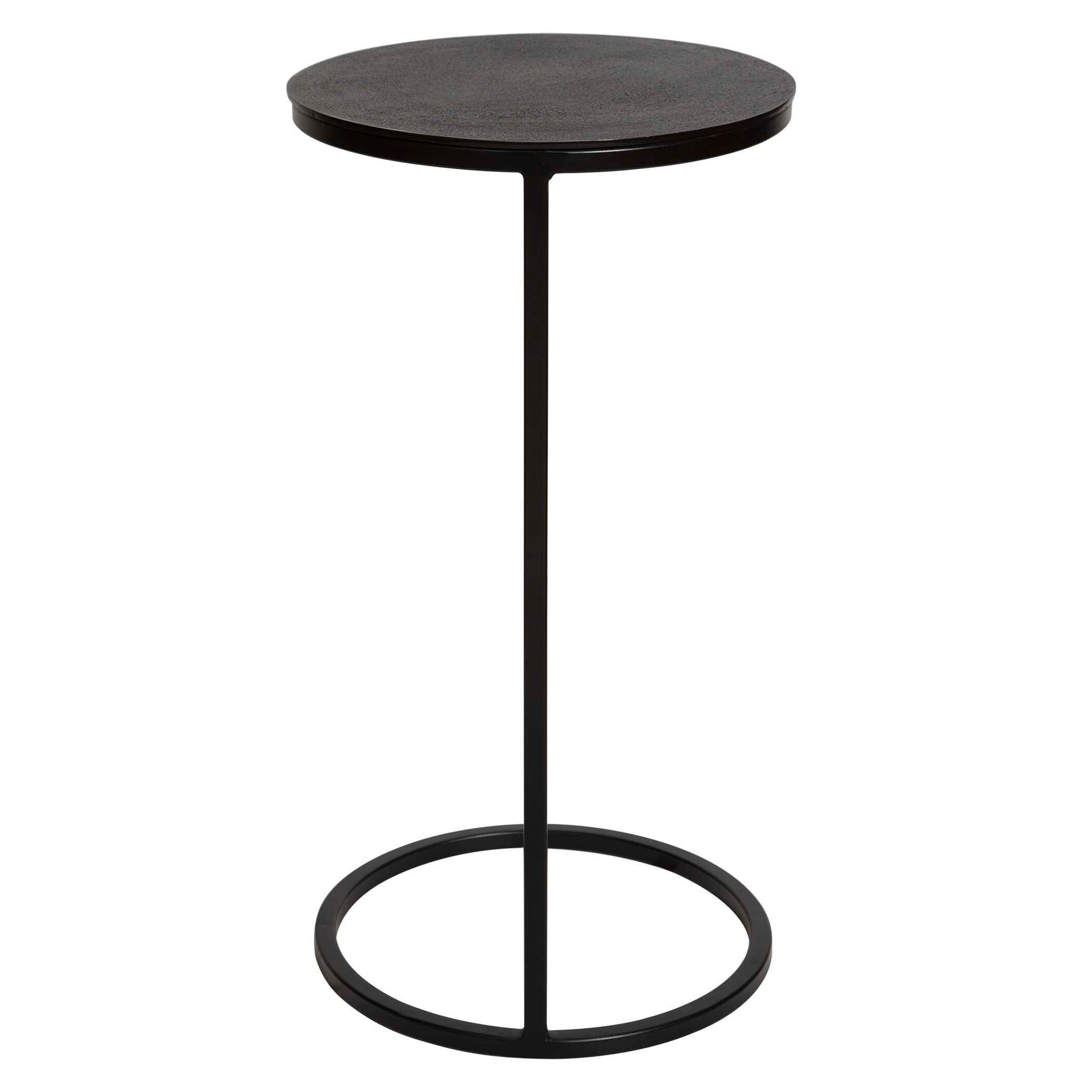Modern And Streamlined, This Round Accent Table Is Constructed In An Aged Black Iron Featuring A Cast Textured Aluminum Slab Top Finished In A Plated Antique Bronze.