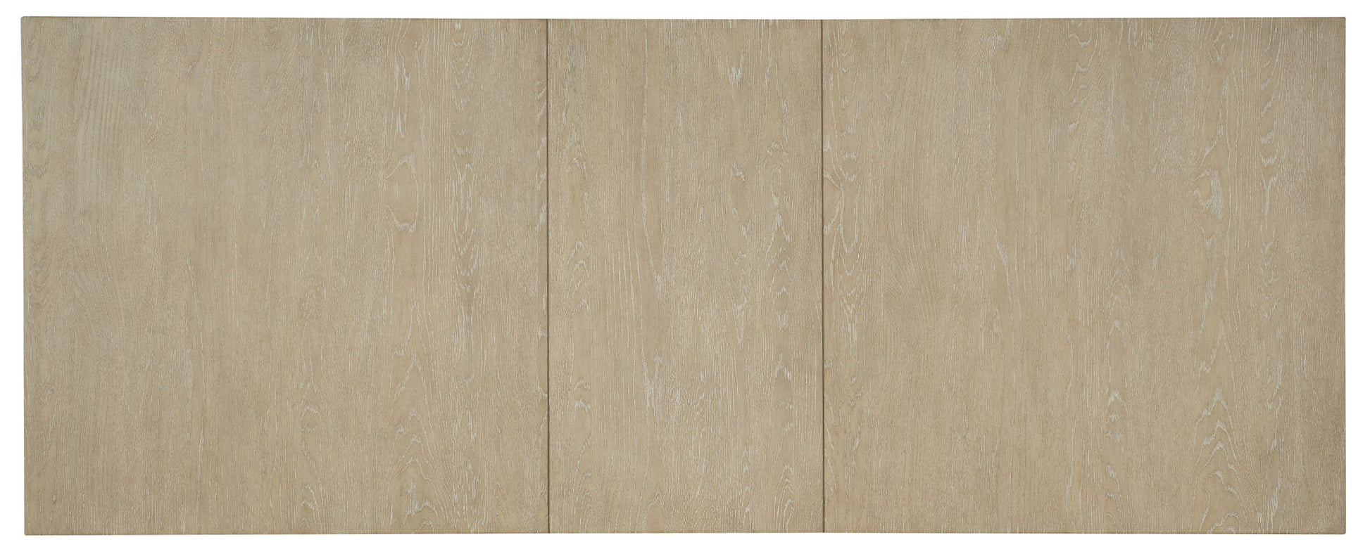 Linger for memorable meals with family and friends at this inviting modern farmhouse-styled table that offers a retreat from your fast-paced lifestyle. Crafted of Oak Veneers, the Cascade Rectangle Dining Table features a stretcher that joins the 2-pedestal base, with the entire base finished in a creamy-colored textured gesso with crackle. The tabletop is a soft taupe finish on oak veneers with dry brushing. With one 22-inch leaf, the table extends to 106 inches long, accommodating 2 arm chairs and 6 side chairs.