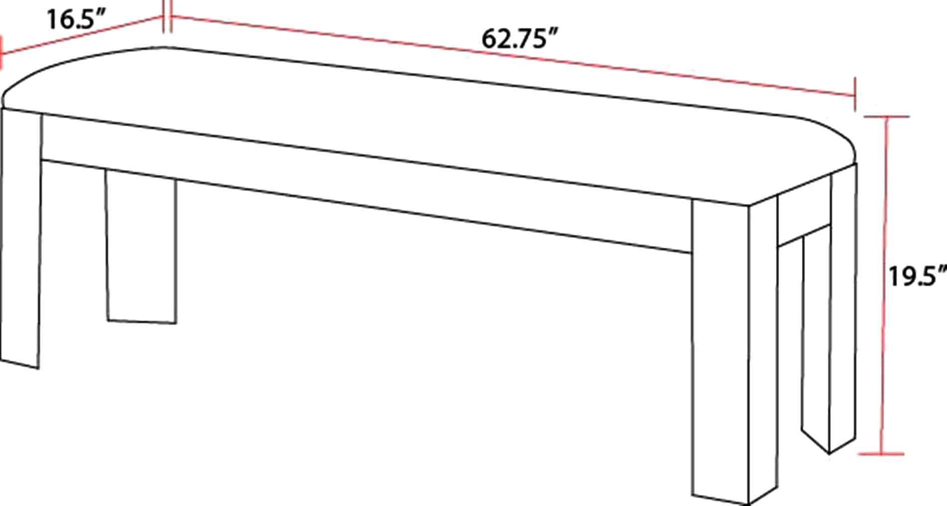 63.0"W x 16.75"D x 19.5"H - 34.8 lb