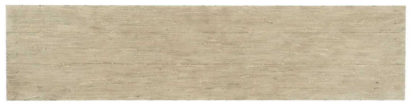 With a romantic French laundry and Shabby Chic appeal, the Ciao Bella Entertainment Console will star in your family room with its Flaky White finish with hand wire brushing over light and airy perforated doors. Crafted of Poplar and Hardwood Solids with Maple Veneers, the console has 3 sliding doors with one adjustable shelf behind each door, a ventilated back panel, 3-plug outlet and accommodates up to an 80- inch TV.