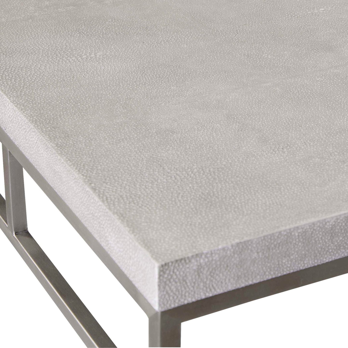 Known For Its Popularity During The Art Deco Period, Shagreen Has Made Its Resurgence As A Modern Home Decor Staple. This Console Features Faux Shagreen Embossed Surfaces In A Natural Light Gray Wash, Paired With A Modern, Stainless Steel Frame Finished In Brushed Nickel.
