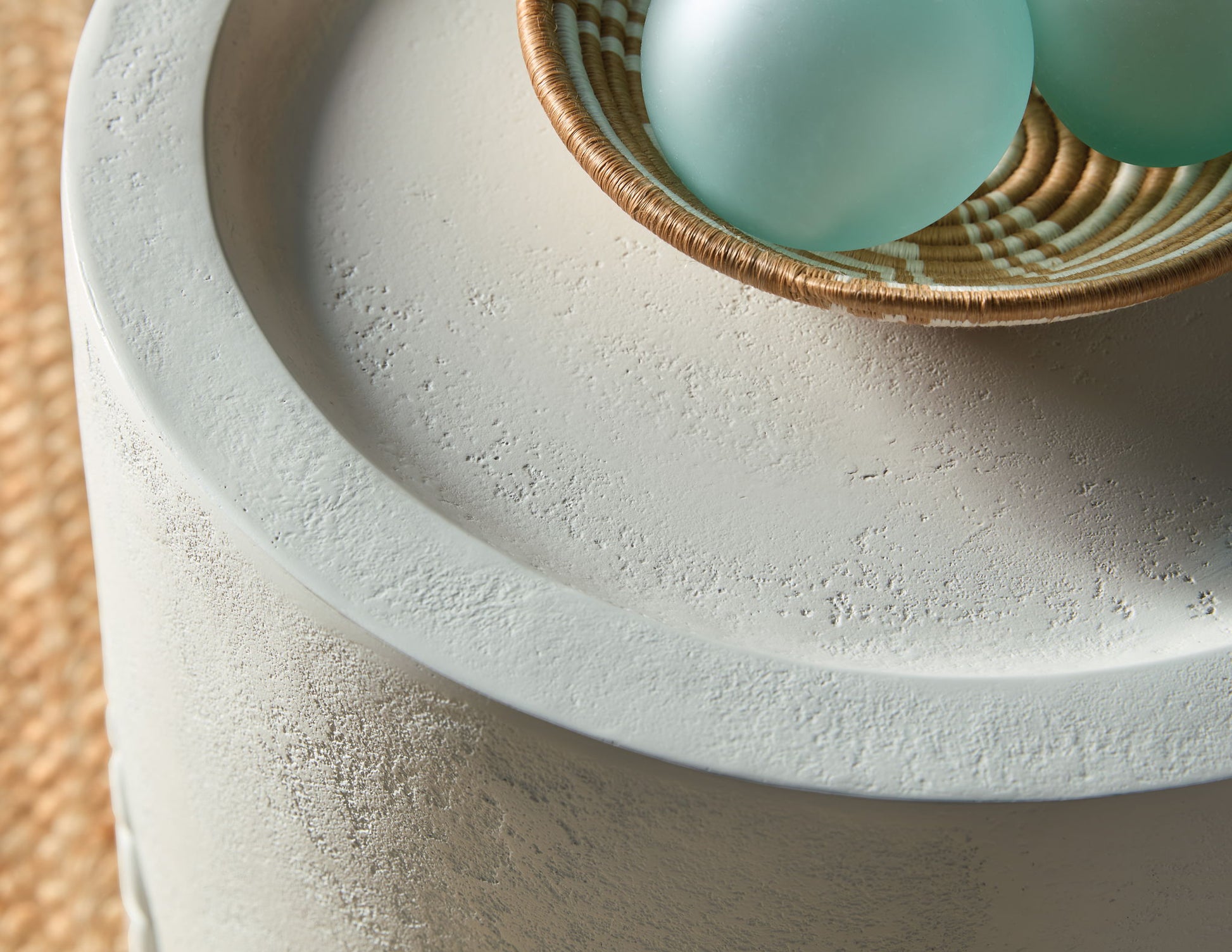 With its textured finish and rounded form, the Amelia Round Table offers a unique focal point for living rooms. The finish is embossed with a leaf motif, giving the table an artisanal feel. The sturdy wood and resin construction ensures long-lasting use, while the built-in casters provide flexibility in arrangement.
