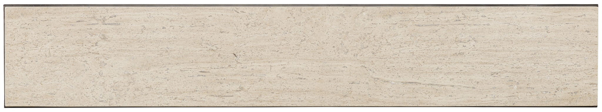 Organic and modern, this striking console table in a neutral color palette has a curvy steel base and natural stone top of Travertine Marble to create an inviting focal point.