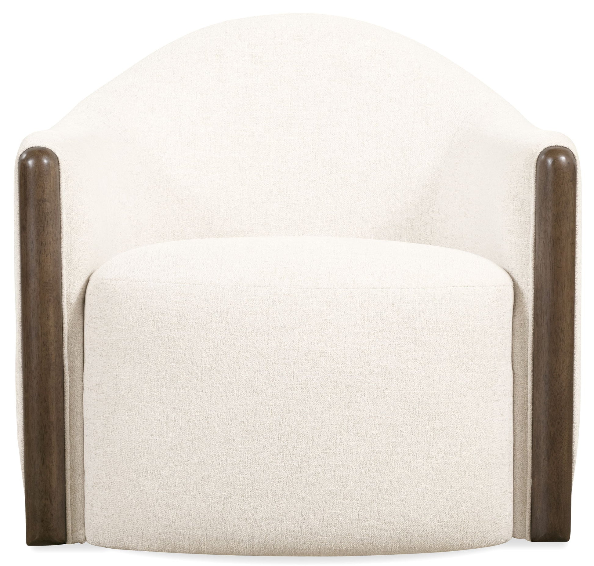 The Cora Swivel Chair offers a fresh, designer-curated take on casual elegance. With a graceful rounded back, dark wood trim, this chair combines comfort and style. Ideal for interior design projects needing texture and movement, its swivel functionality and transitional appeal make it a versatile addition to any seating arrangement.
