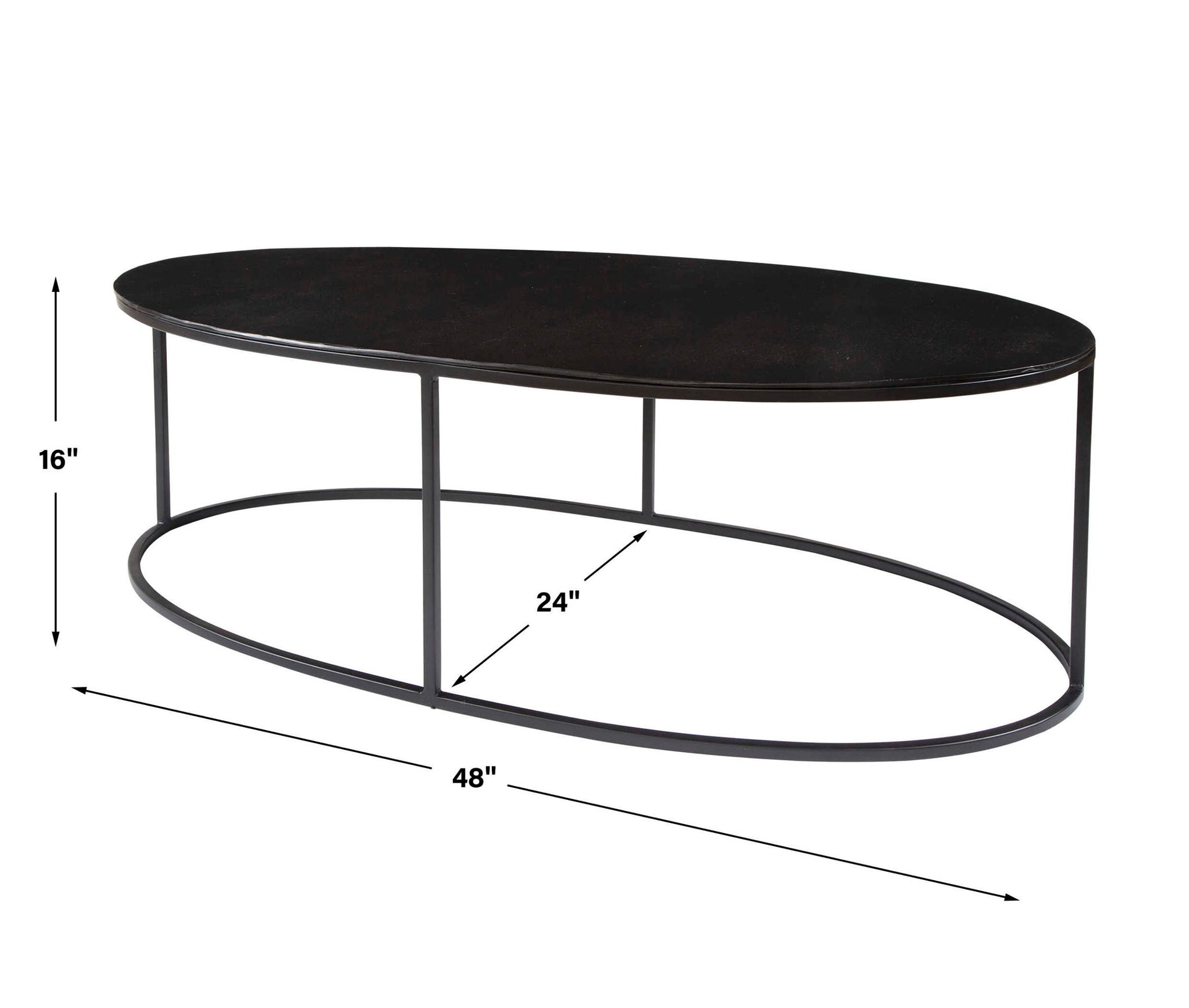 Simplistic Industrial Style Coffee Table, Constructed In An Aged Black Iron Featuring A Cast Textured Aluminum Slab Top Finished In A Plated Antique Black.