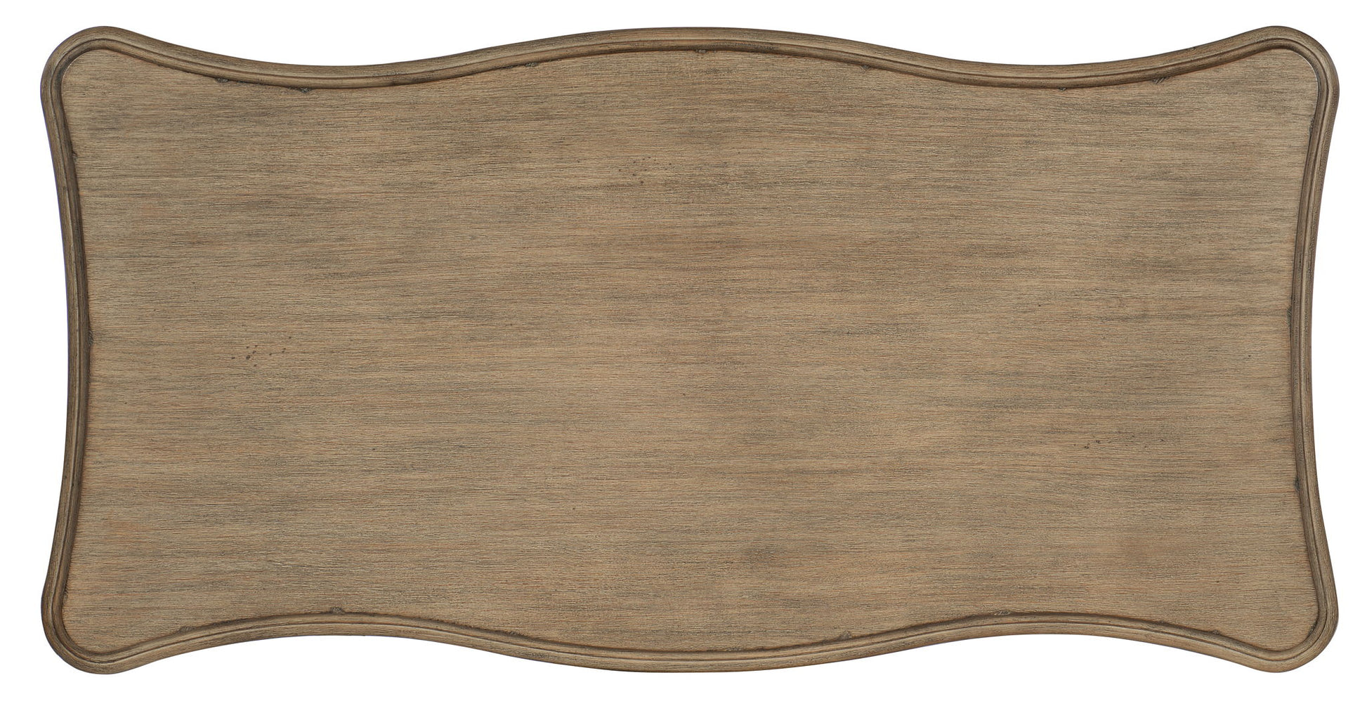 With a casual attitude and a sun-washed ambience inspired by the Mediterranean island for which it is named, the Corsica leg desk is crafted of Acacia Veneers with a wire-brushed, artisan light natural finish with reclaimed character. Stylish details include a shaped apron, decorator bun feet and a shaped stretcher on 3 sides of the base. The desk features one drawer and two pullout shelves for extra work surfaces on each end.