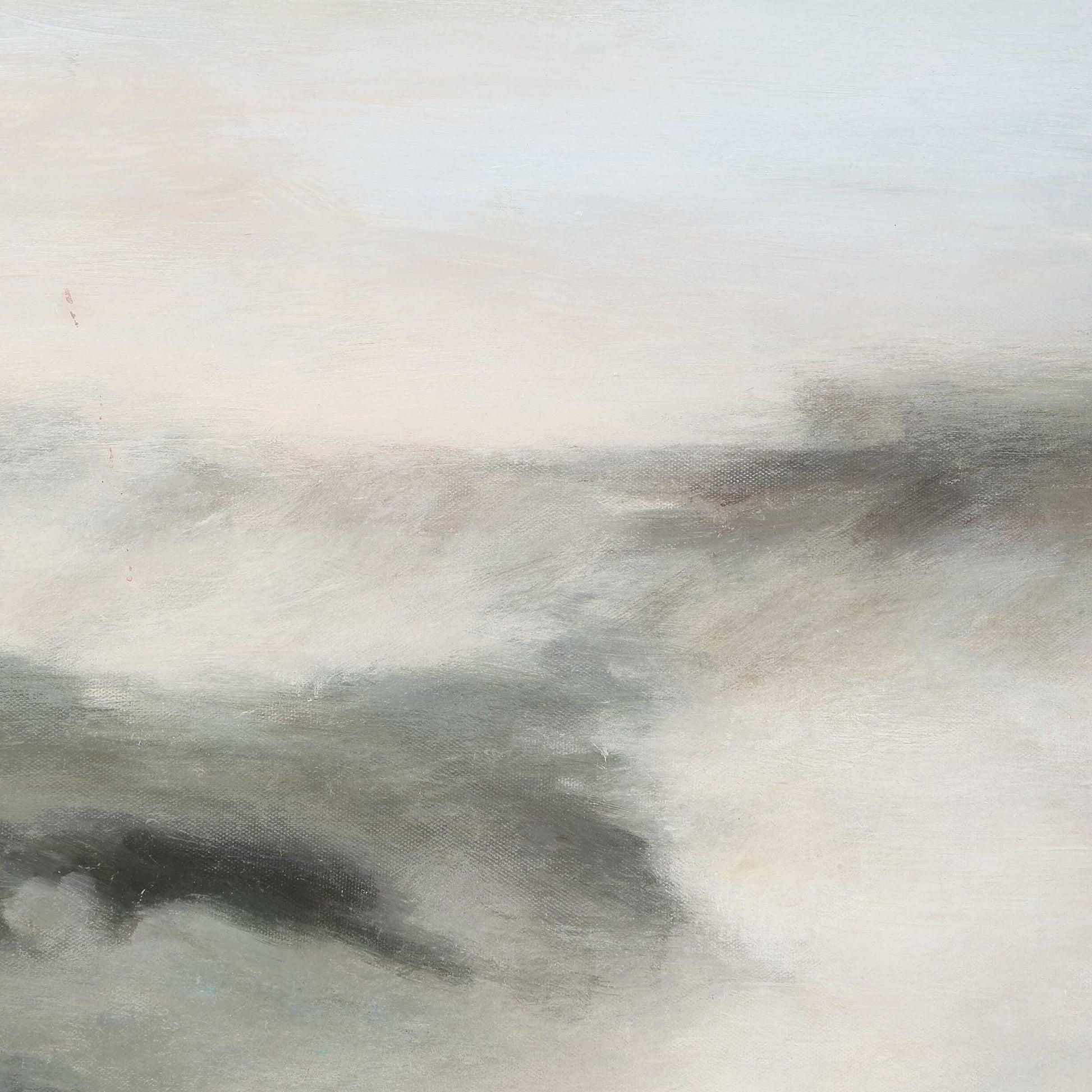 This Serene Hand Painted Artwork Features A Tranquil Blend Of Soft Blues, Grays, And Whites, Evoking A Misty Landscape. Subtle Layering Creates Expansive Depth And A Calming Atmosphere. The Artwork Is Complemented By A Thin Bone White Frame. Due To The Handcrafted Nature Of This Artwork, Each Piece May Have Subtle Differences.