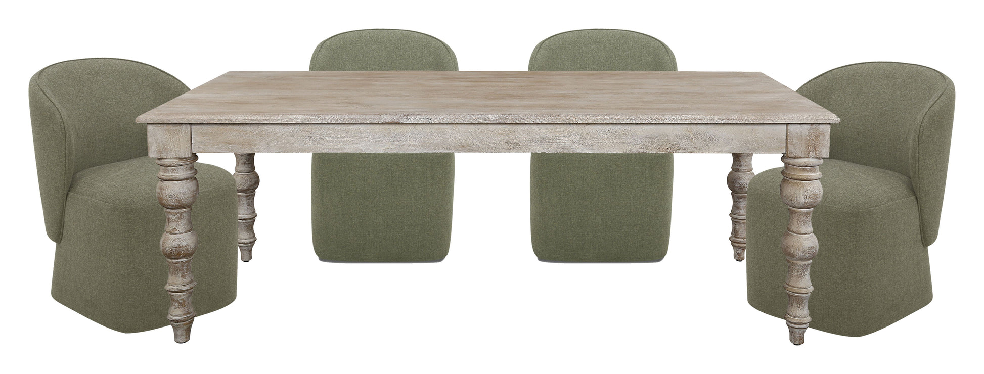 Crossings - Rectangular Dining Table With 4 Upholstered Chairs - Whitewash & Green