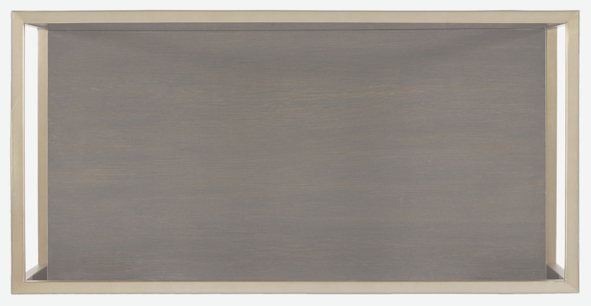 With a sophisticated and modern simplicity, the Curated Nightstand mixes materials of White Oak Veneers in a Midnight finish, brass-colored metal and glass for a curated chic look in an organic color palette. The single drawer with its two horizontal brass pulls looks like it is floating between the brass frame and the glass top for an architectural appeal.