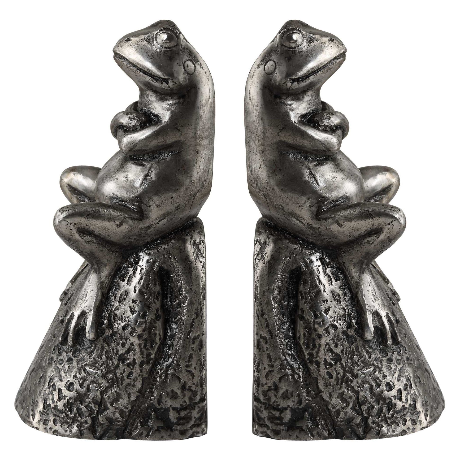 Daydreaming Bird - Frogs Aged Silver Bookends (Set of 2)