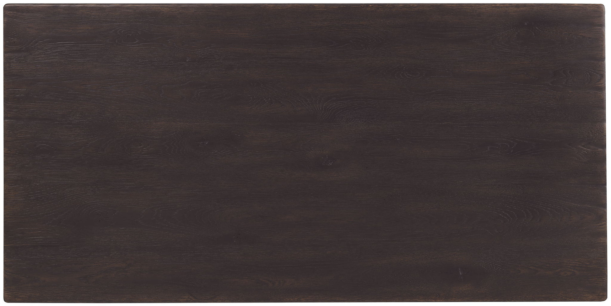 The finish gives this rectangular cocktail table a dramatic character. With its double pedestal base and sturdy fixed shelf, it blends rustic sophistication with modern function, perfect for a design-conscious living space.