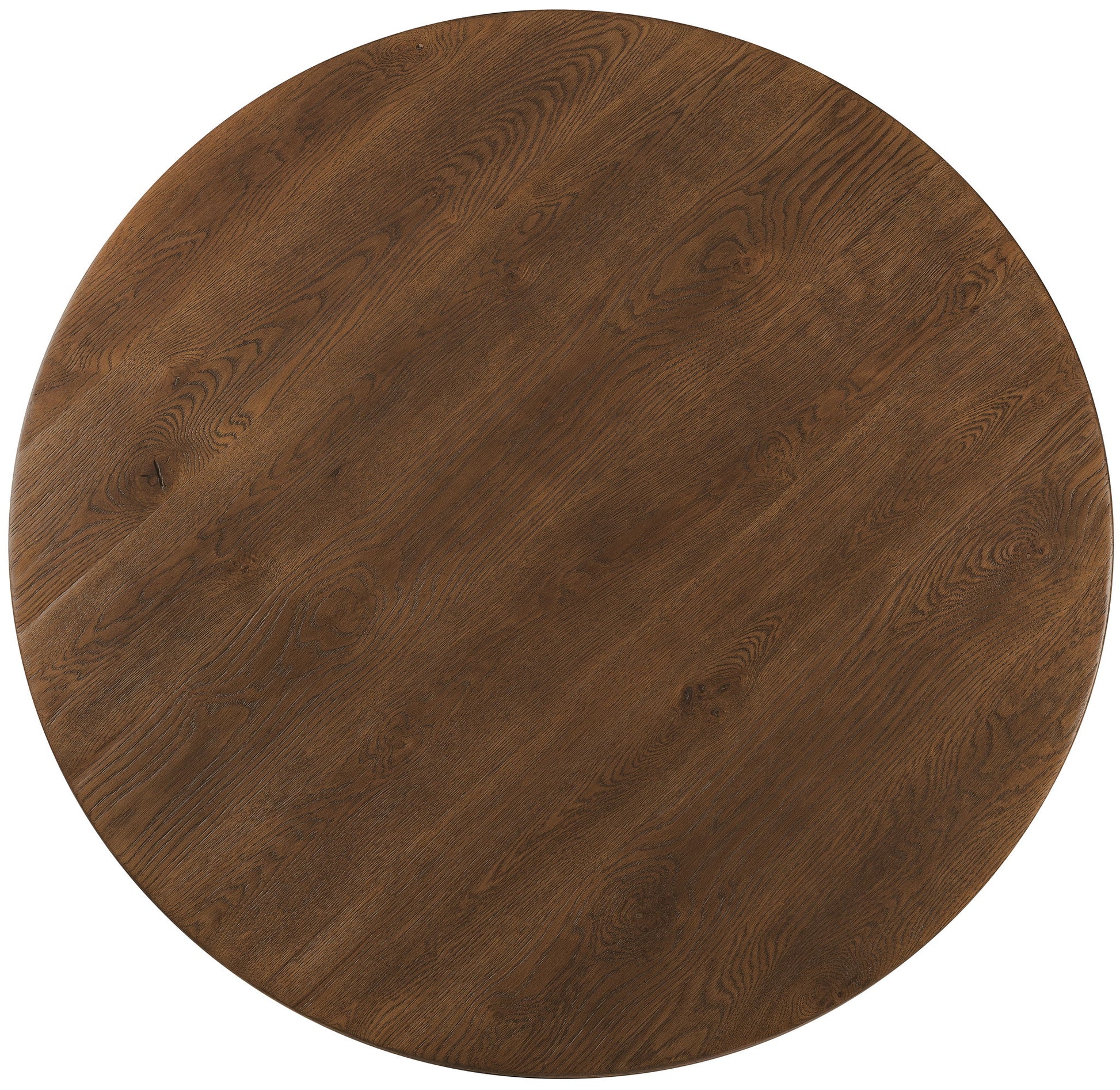 This round cocktail table offers a dark, dramatic presence. With its X-stretcher base, durable oak veneer construction, and rich texture, it’s a versatile centerpiece that suits both modern rustic and contemporary interiors.