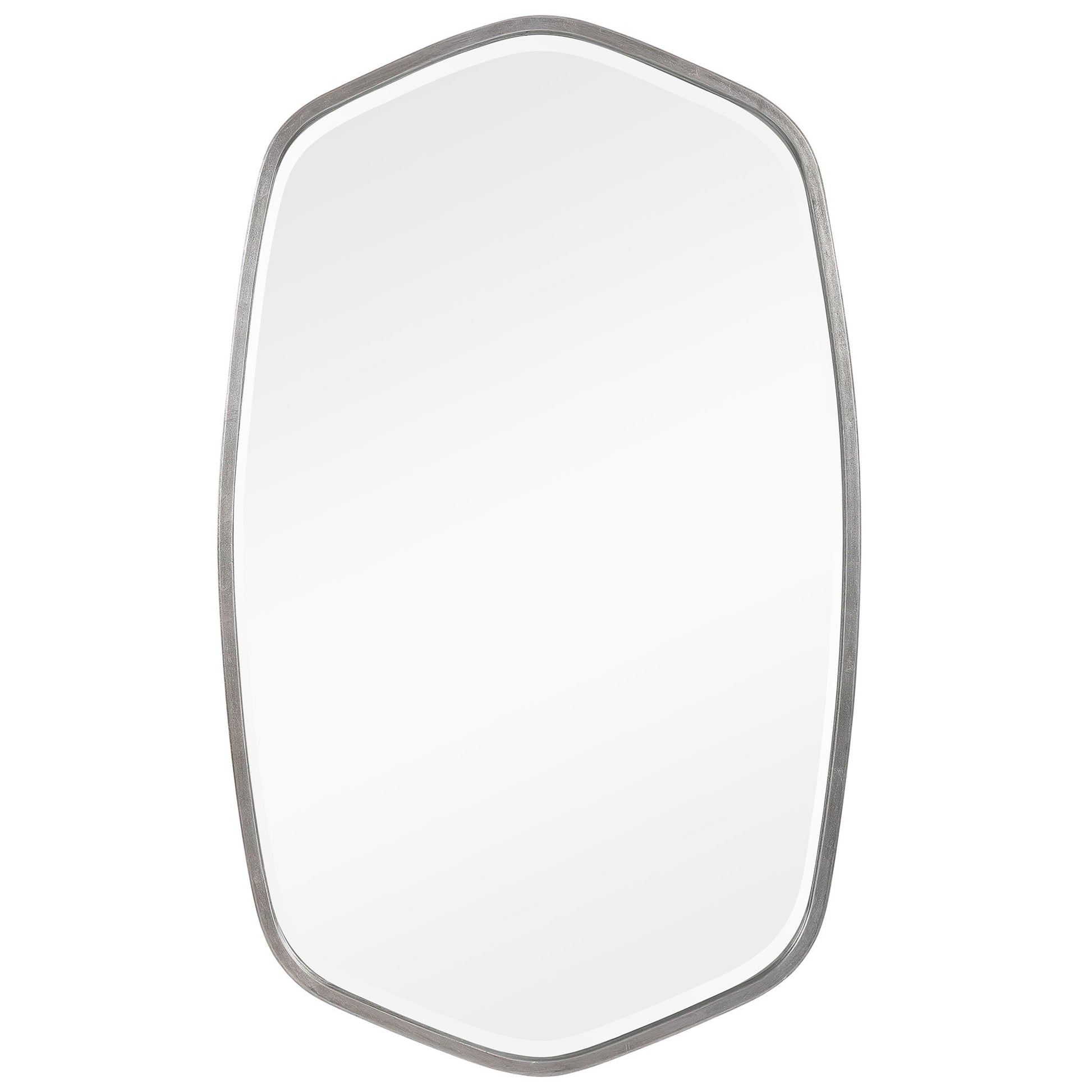 This Hand Forged Iron Mirror Frame Features A Unique Shape With Elegant Curves, Finished In A Versatile Silver Leaf. Mirror Has A Generous 1 1/4" Bevel.