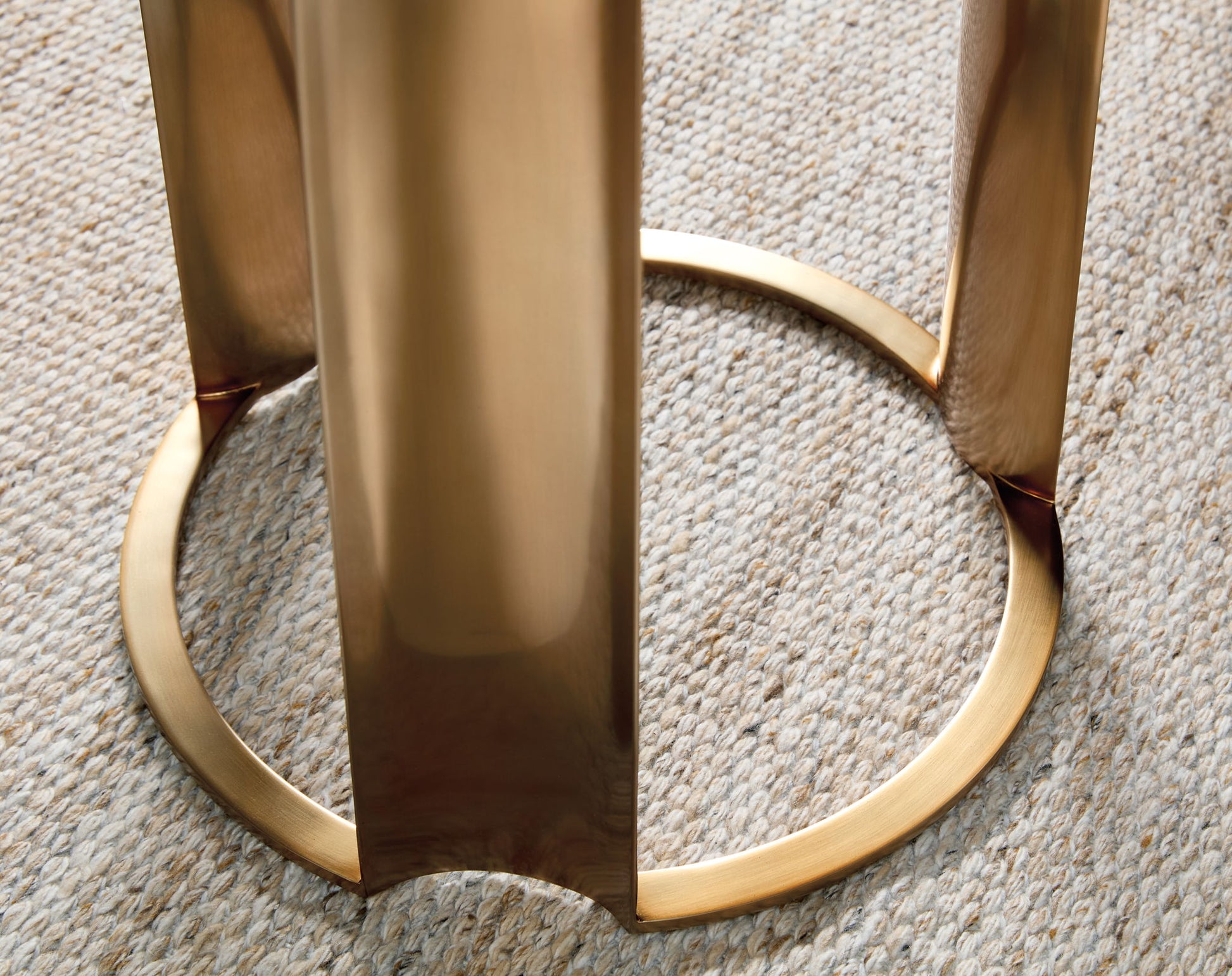 The Eleana Accent Table features a Light Caramel walnut veneer top and a plated Sunlit Bronze metal base, marrying warm wood tones with metallic sophistication. Its round shape is perfect for layering next to sofas or chairs, adding depth and luxury to any living room setting. A versatile accent piece, this table shines in modern, transitional, or mid-century-inspired interiors.