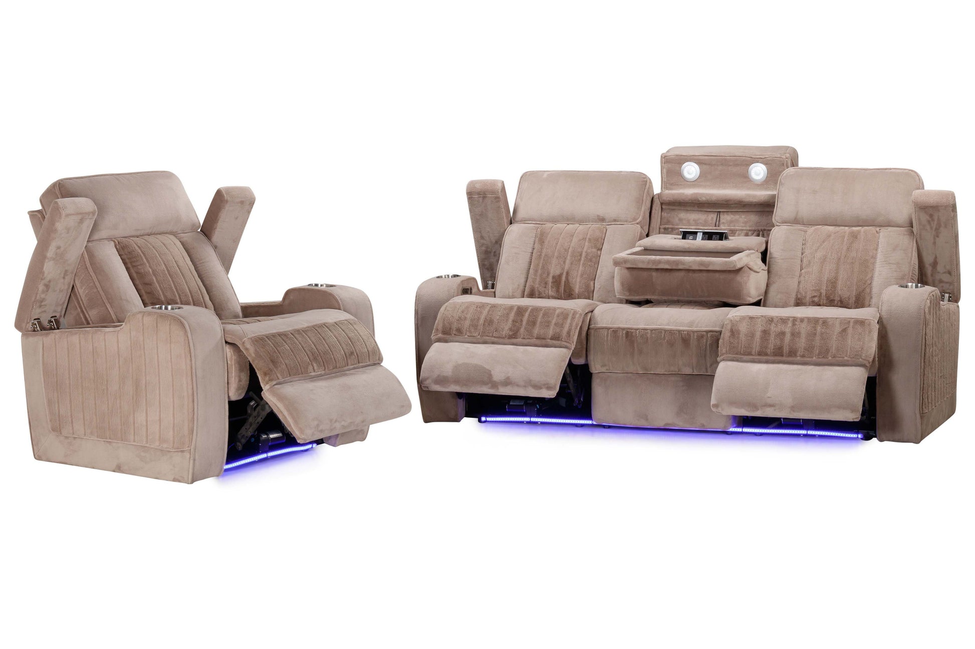 Equinox - Power Reclining Sofa And Loveseat - Mushroom