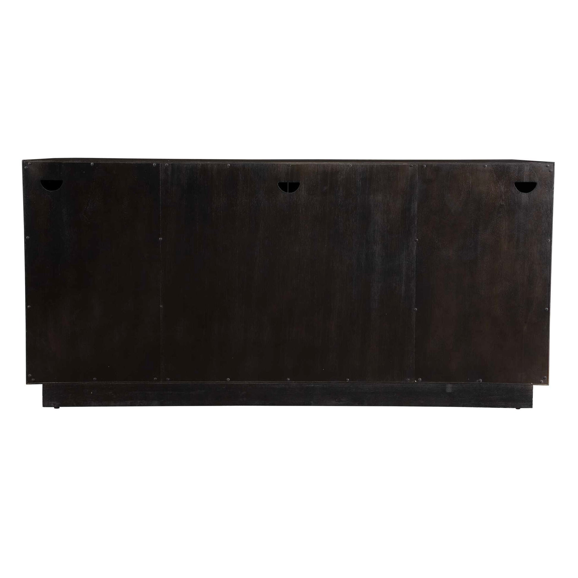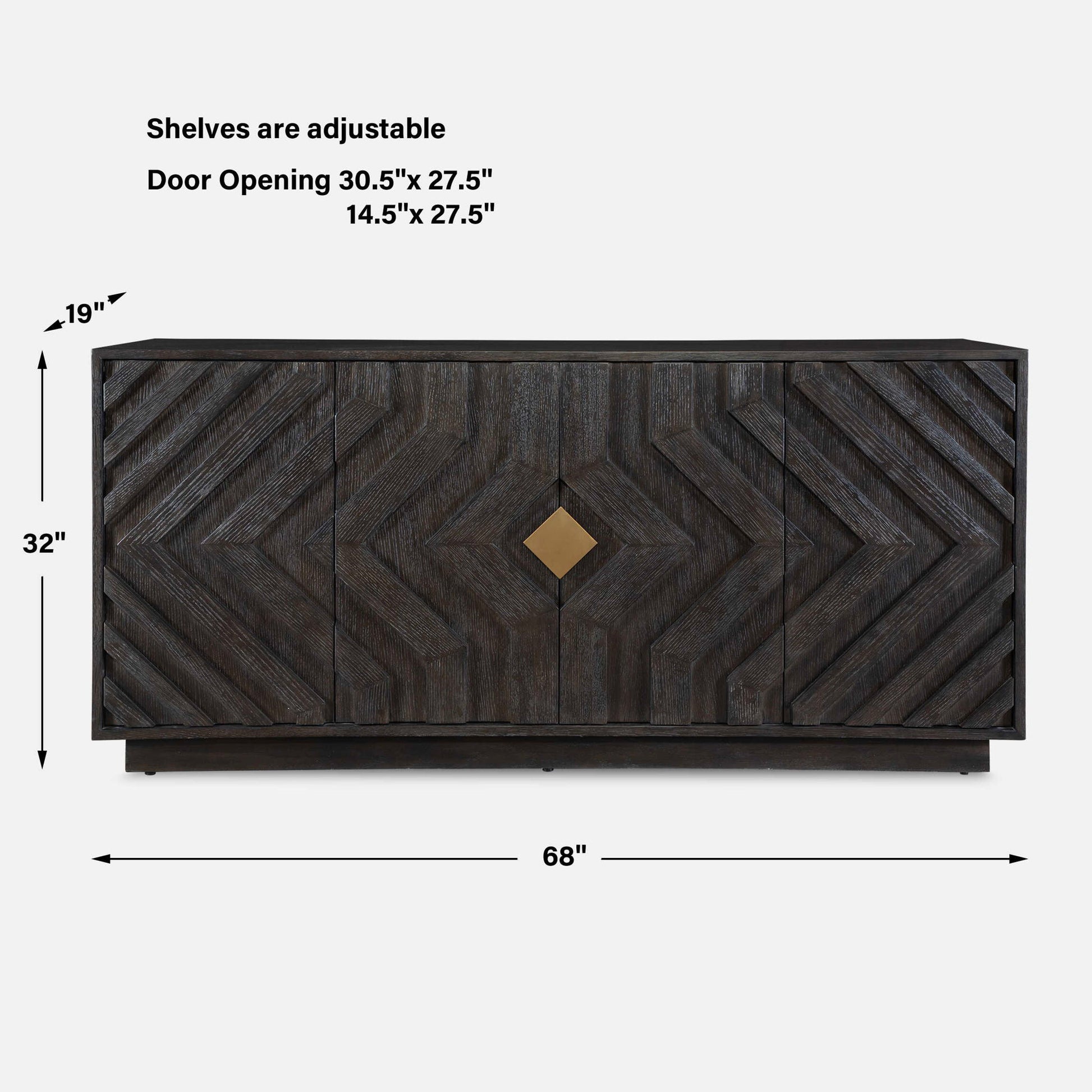 This Elegant Four-door Cabinet Beautifully Merges Contemporary Charm With Modern Sophistication. The Cabinet Showcases Both Beautiful Oak Grains In A Stunning Chevron Pattern And Brushed Gold Metal Door Pulls For A Touch Of Luxury.