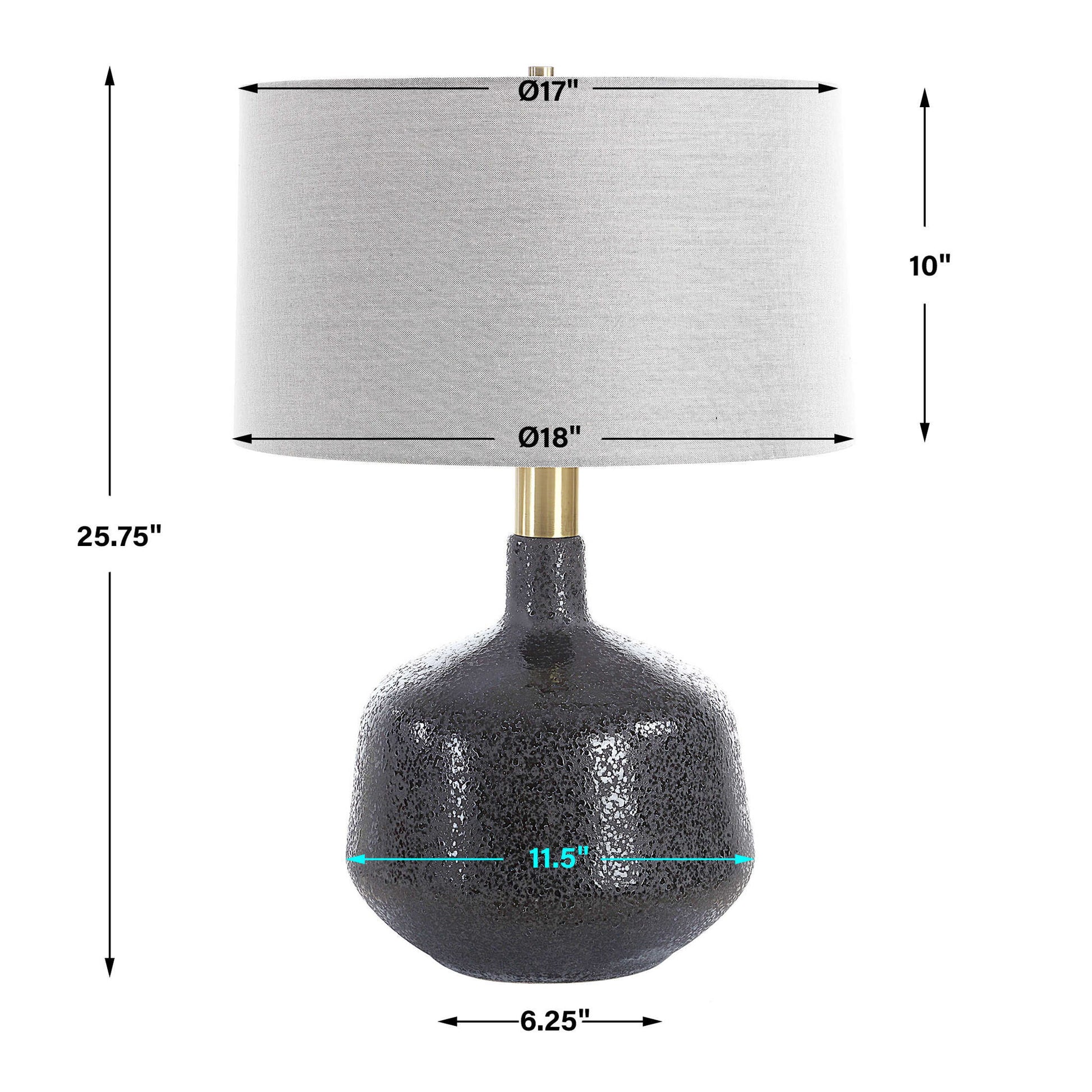 Featuring A Matte Black Ceramic Base With Mottled Gloss Highlights Paired With Brushed Plated Brass Accents, The Flanagan Table Lamp Effortlessly Exudes A Sense Of Opulence. The Slightly Tapered Round Hardback Shade Is Covered In A Light Gray Linen Fabric.