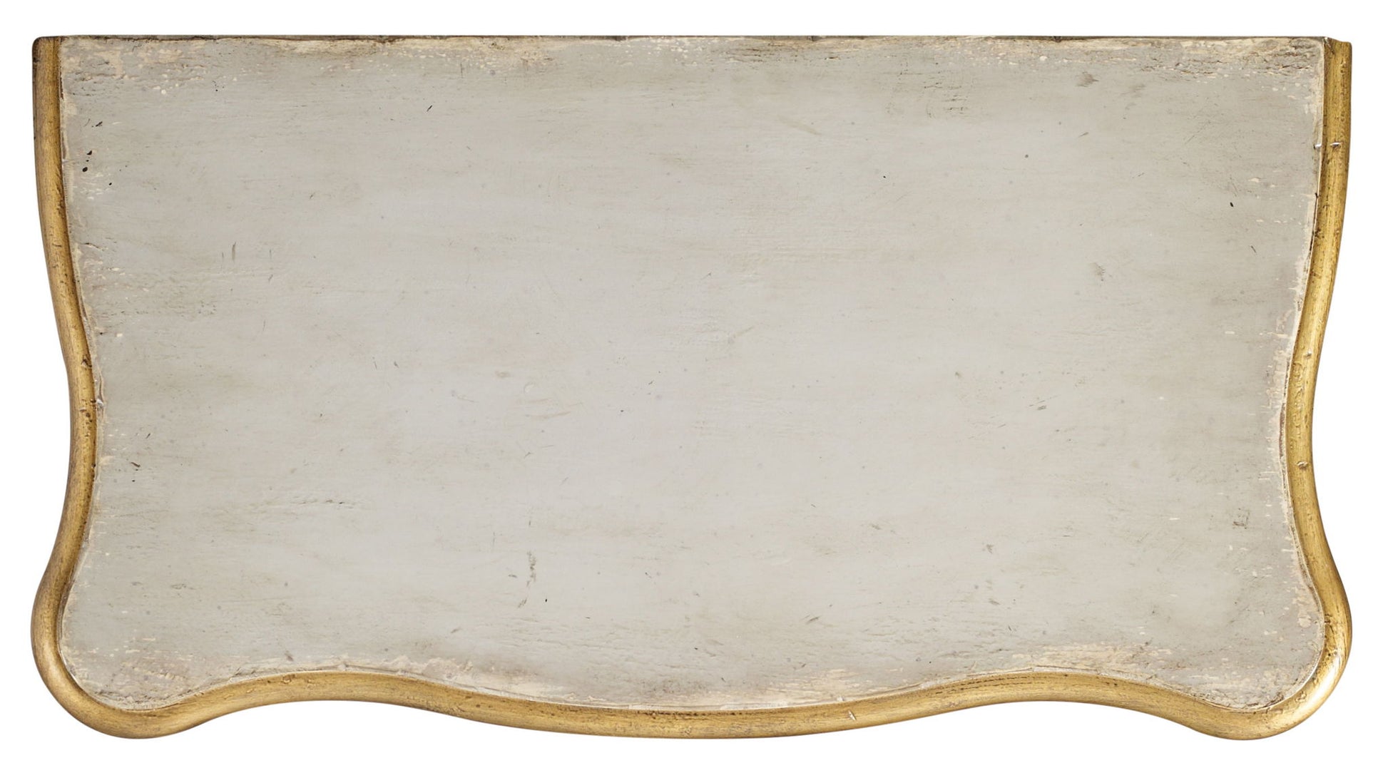 Graceful and romantic, this enchanting soft gray chest is offered in a vintage French style with exquisite design details like gold leafing, shapely cabriole legs and a gold-leaf ornamental keyhole escutcheon on each drawer. Crafted of Poplar Solids and Gold Leaf, it features two drawers and is a compact 30 inches wide.