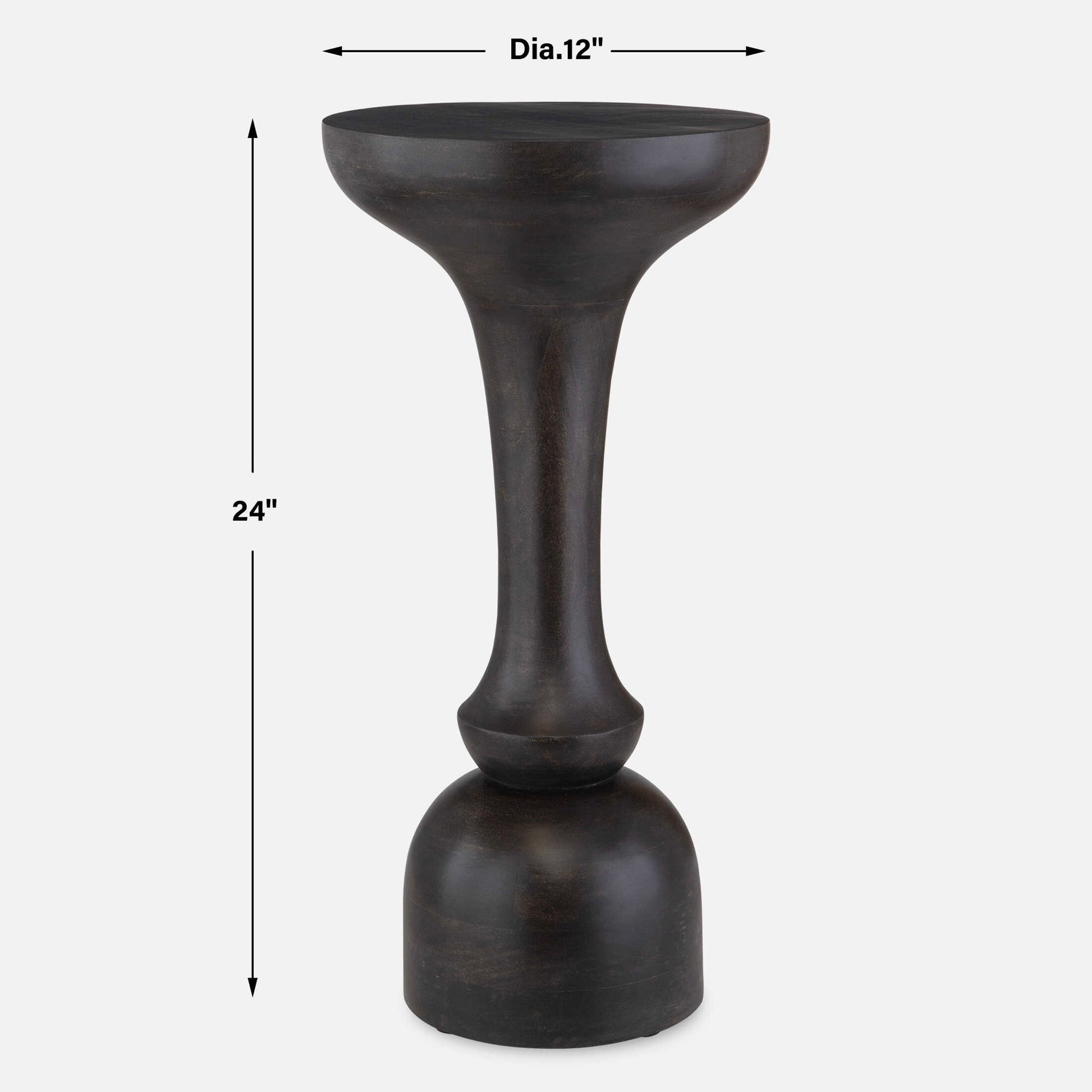 Crafted From Mango Wood, This Accent Table Boasts A Rich Black Finish And A Distinctive Hourglass Base With Flowing Curves. Its Chess-like Design Adds An Elegant Touch To The Piece, Making It A Standout Piece In Any Space.