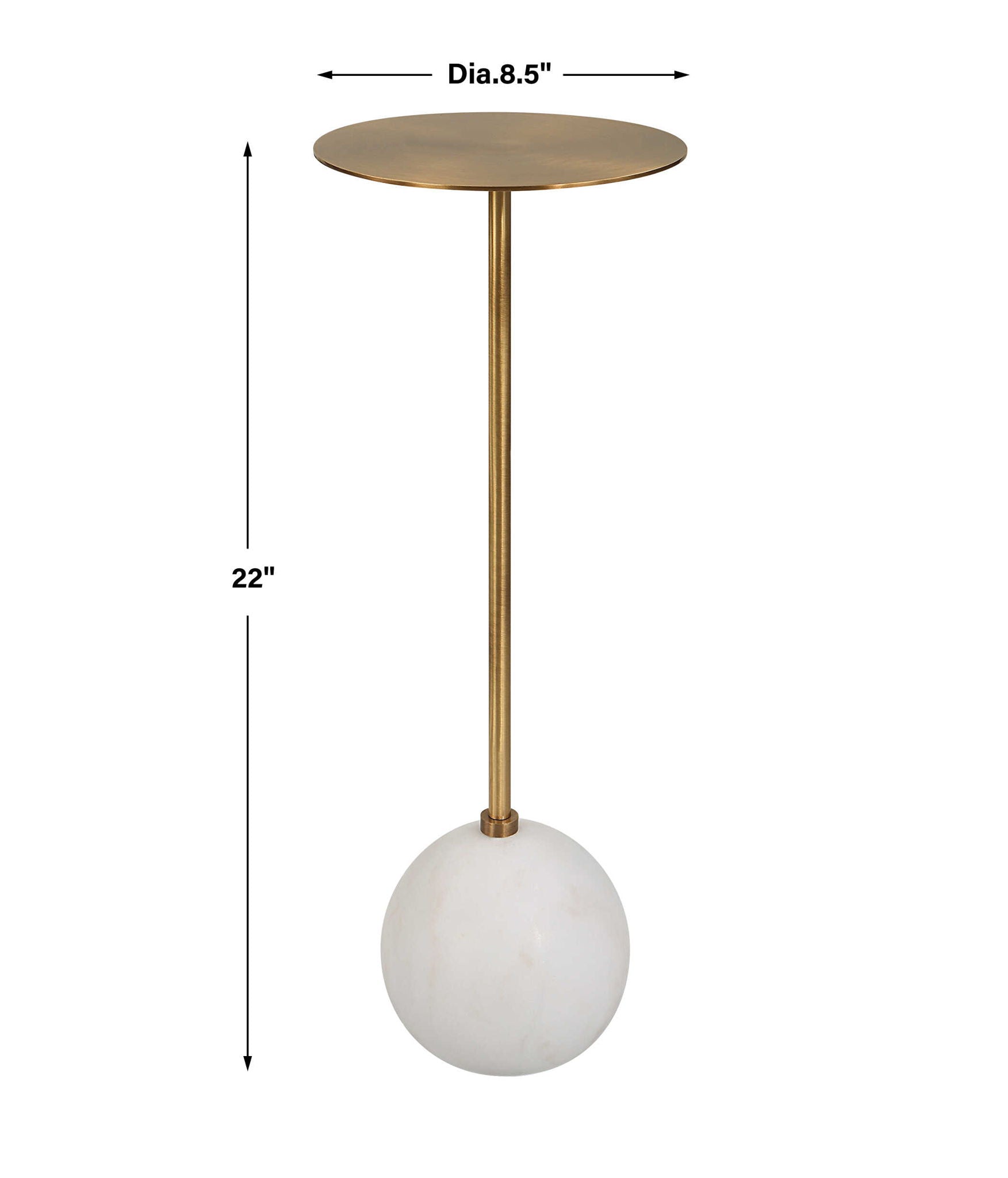 This Sophisticated Drink Table Goes Wherever The Party Goes. An Elegant Honed White Marble Foot Supports The Solid Brass Top, Perfect For Holding A Book Or Drink. Because Of The Natural Characteristics Of Marble, Each Piece Will Have Unique Veining Patterns.