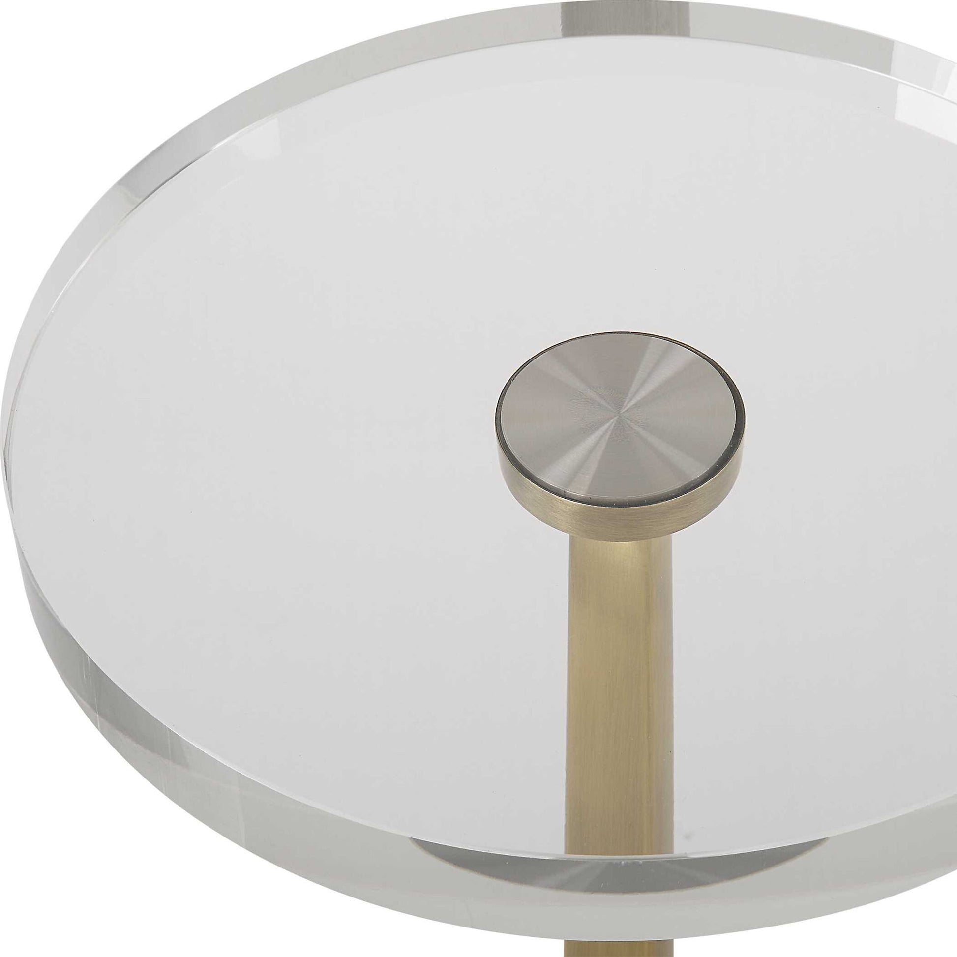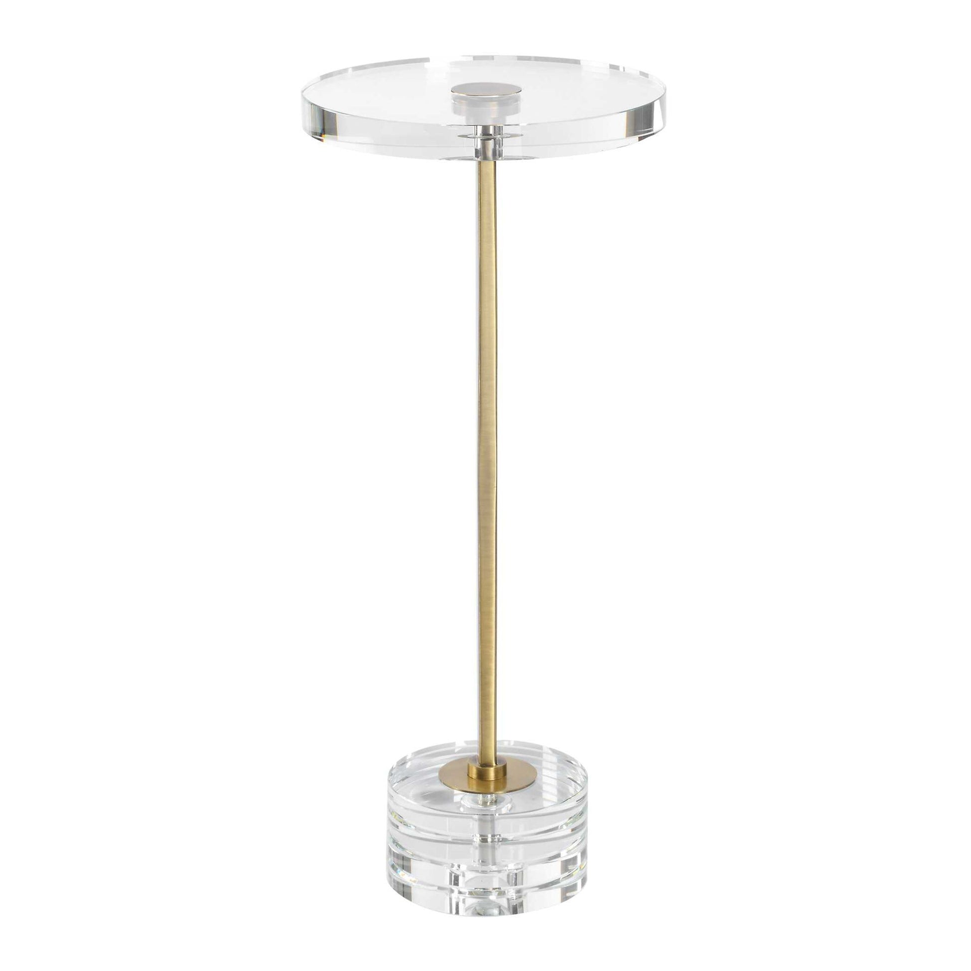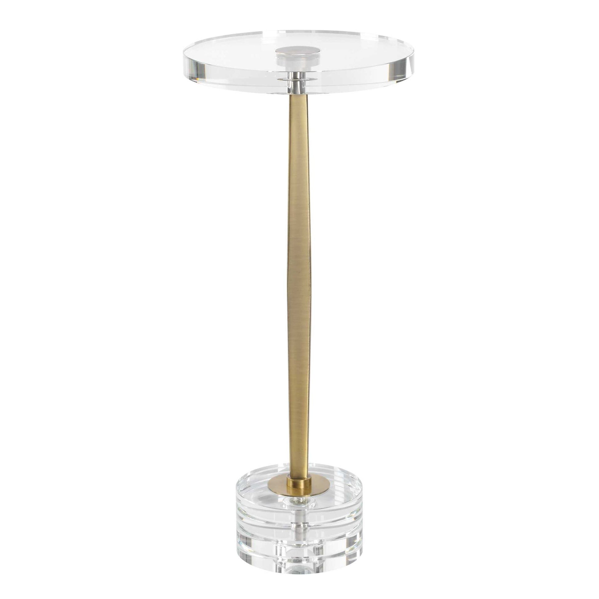 The Groove Drink Table Features A Sophisticated Ribbed Crystal Base With A Coordinating Thick Crystal Top. The Iron Stem Is Finished In A Classic Brushed Gold.