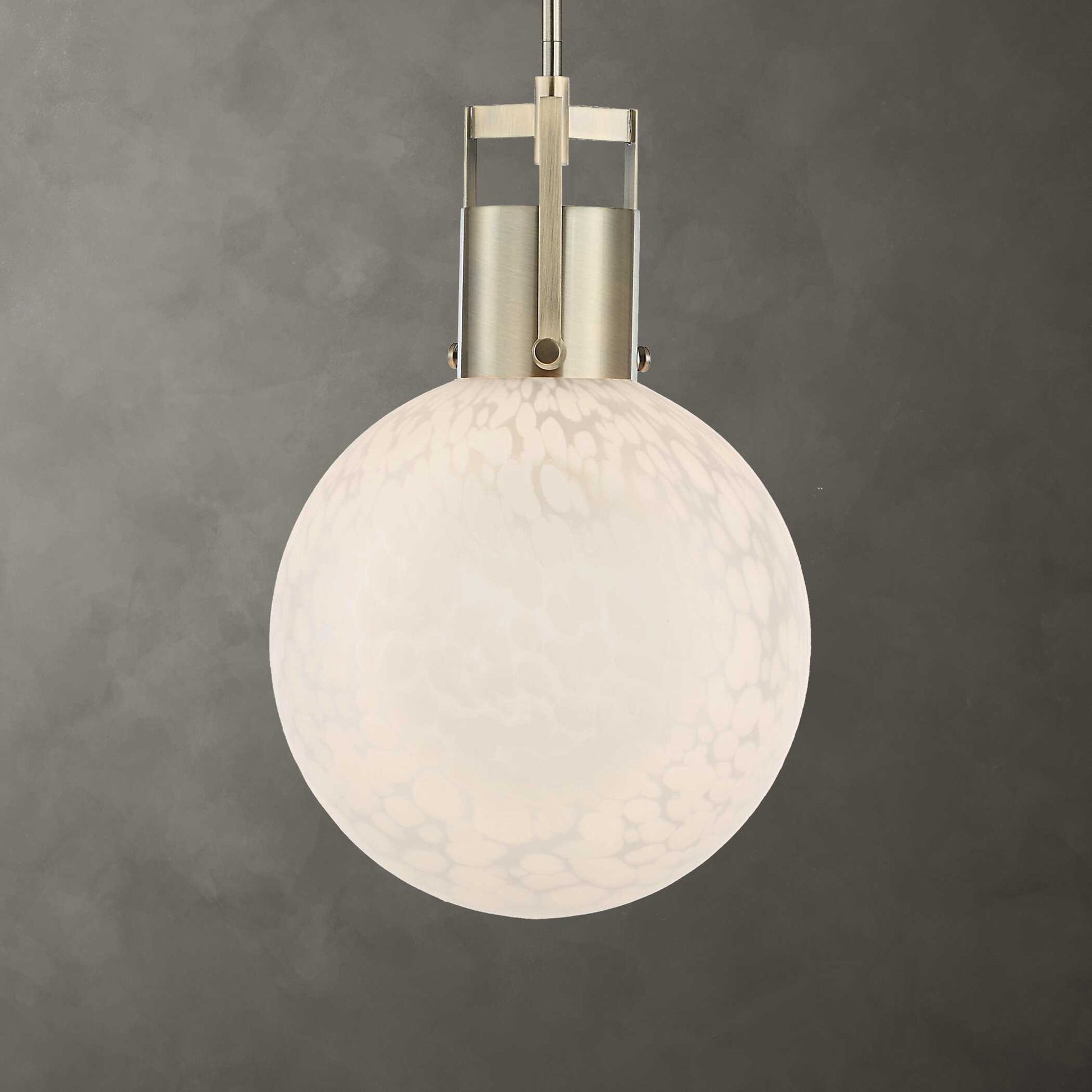 Our Huch Pendant Features An Upper Cap With Architectural Crossbar Accents With An Oversized Etched White Spotted Glass Globe Giving Warmth And Ample Light. 1-60 Watt Max Edison Socket. Bulbs Not Included. Supplied With 15' Wire, 3-12" Stems And 1-6" Stem For Adjustable Installation.