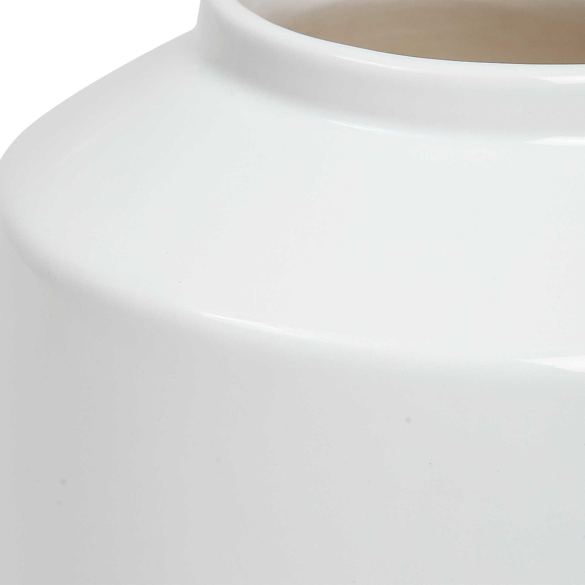 Set Of Two Ceramic Vessels Are Finished In A Stunning Gloss White Glaze. The Varying Vase Heights Create Their Own Beautiful Display Or Can Be Used To House Floral Stems. Sizes: S- 8x8x8, L- 5x10x5