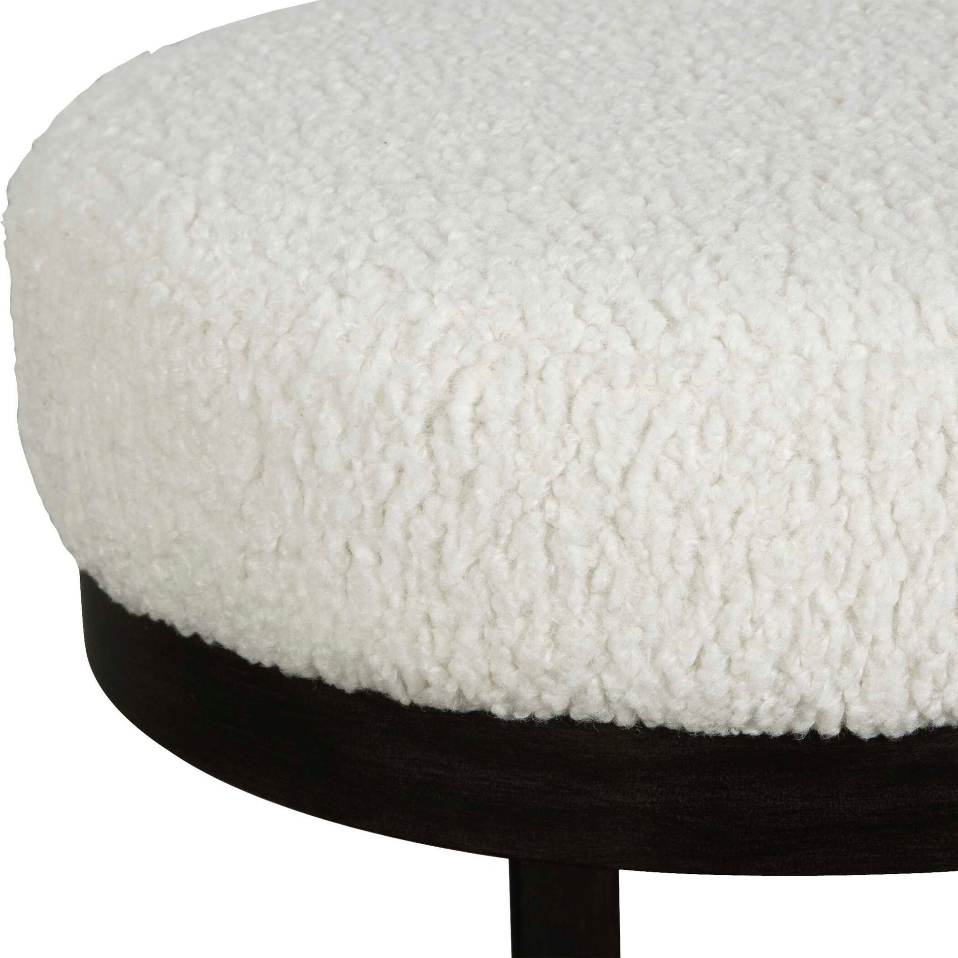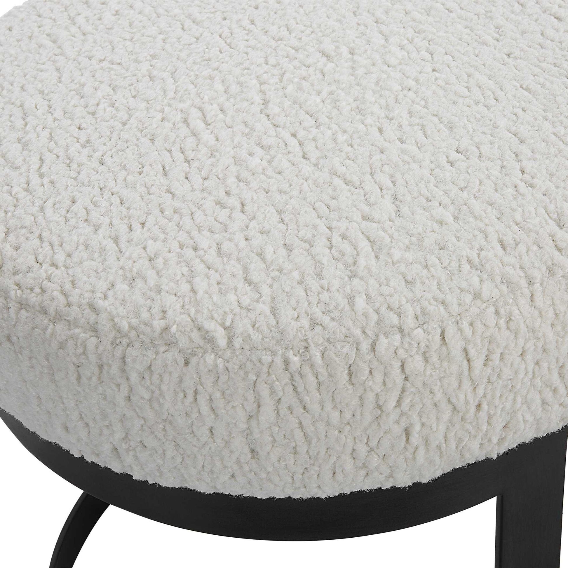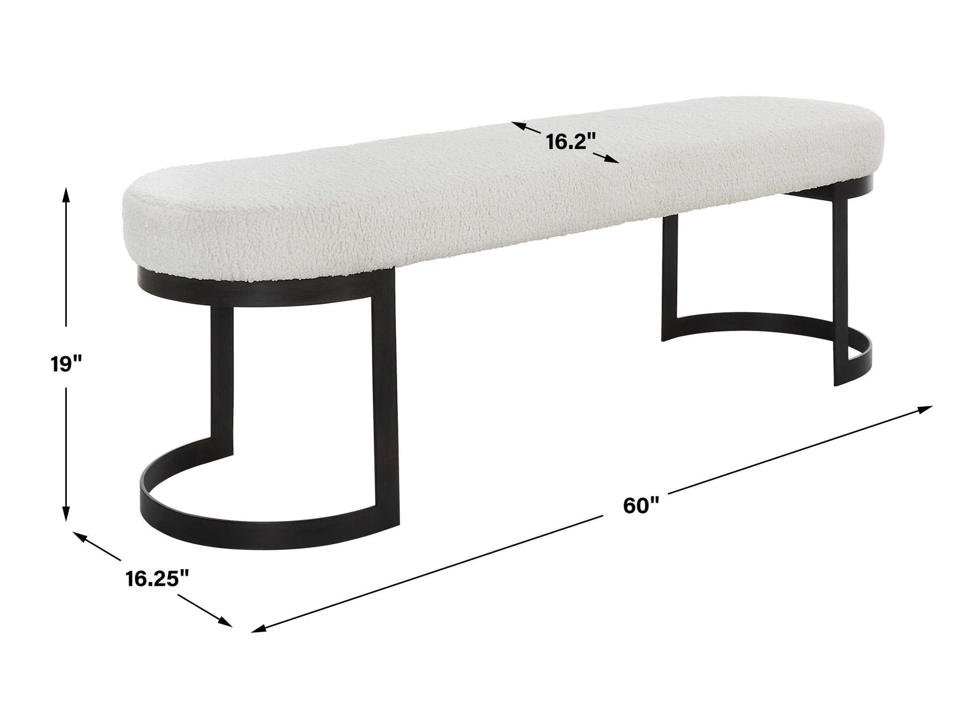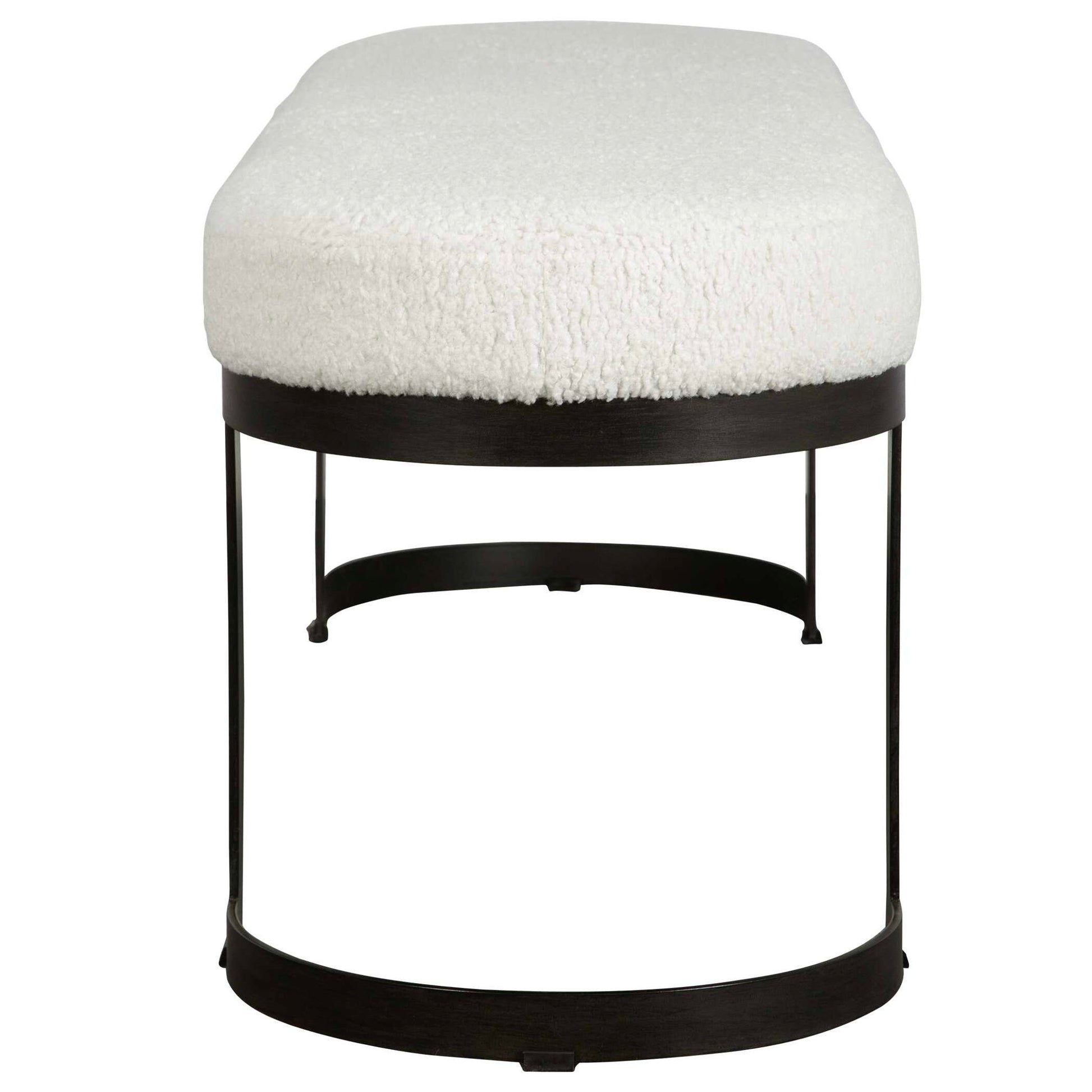 Merging Simplicity With Style, This Bench Features A Thick Hand Forged Iron Base Finished In Matte Black. The Plush Seat Is Upholstered In Natural Faux Shearling Fabric.