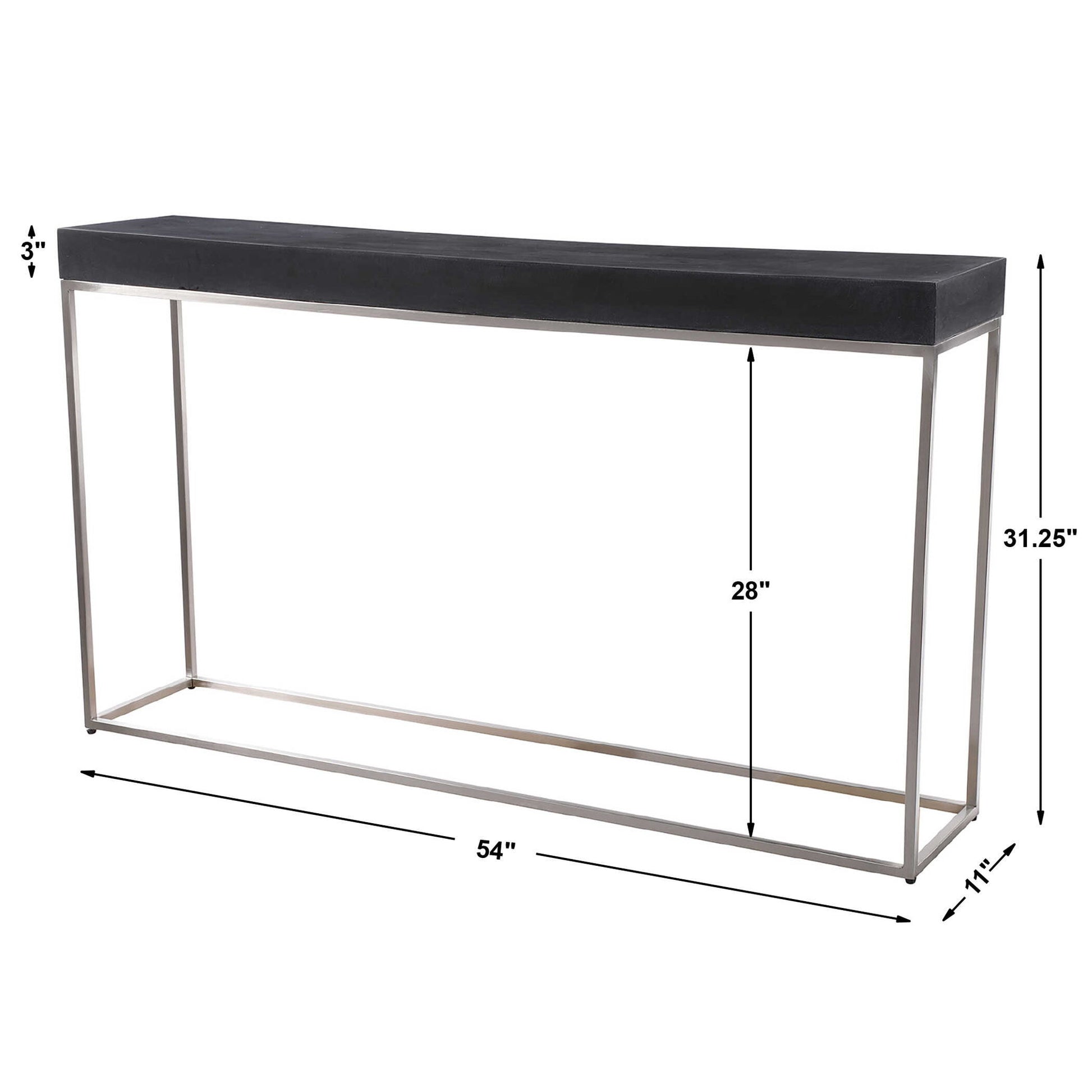 Sleek And Contemporary, This Console Table Features A Black Concrete Look Atop A Brushed Nickel Stainless Steel Base.