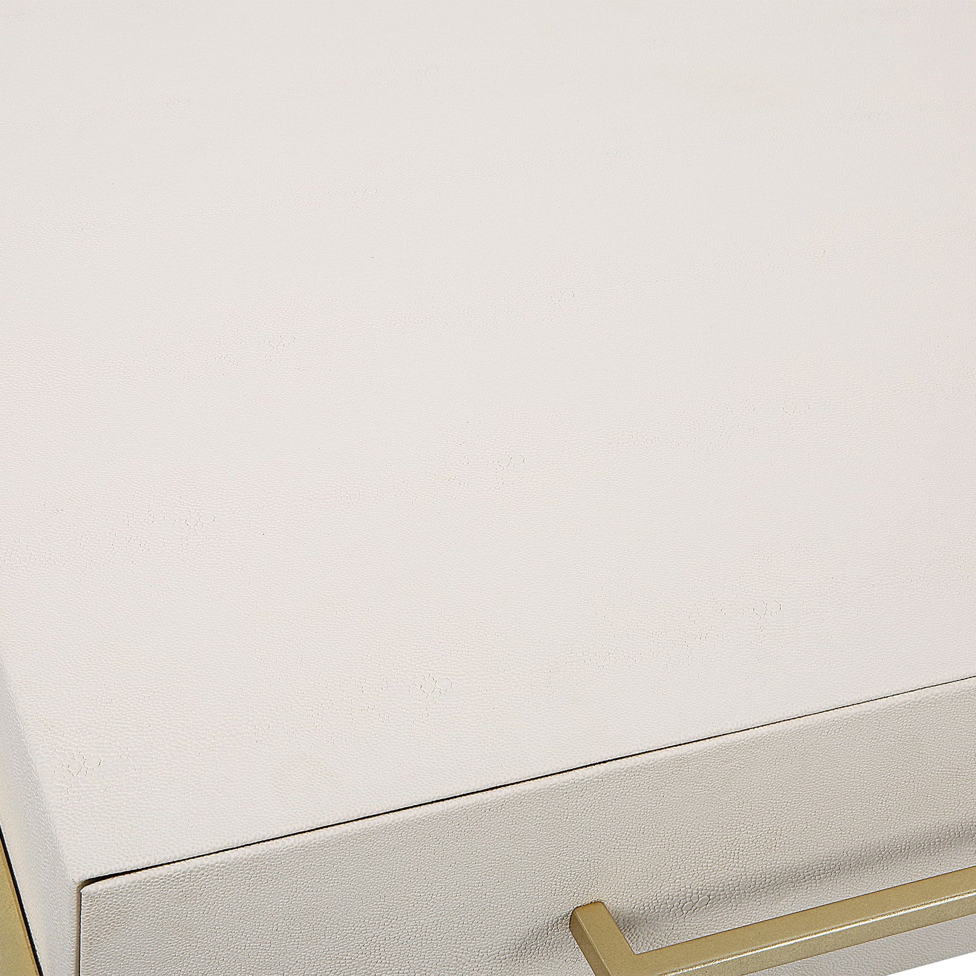 A Modern And Stylish Place To Catch Up On Emails, The Jewel Desk Features A White Faux Shagreen Wrapped Top Nestled Into An Iron Frame In Gold Leaf. The Mitered Edge Drawer Fronts And Gold Drawer Pulls Add To The Sleek Look.