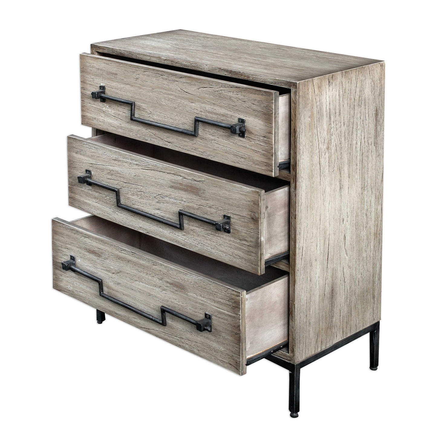 Constructed From Plantation-grown Mango Wood In An Aged Ivory Finish With Ember Highlights, Featuring Old Iron Drop Swing Bar Pulls, On An Industrial Iron Base.