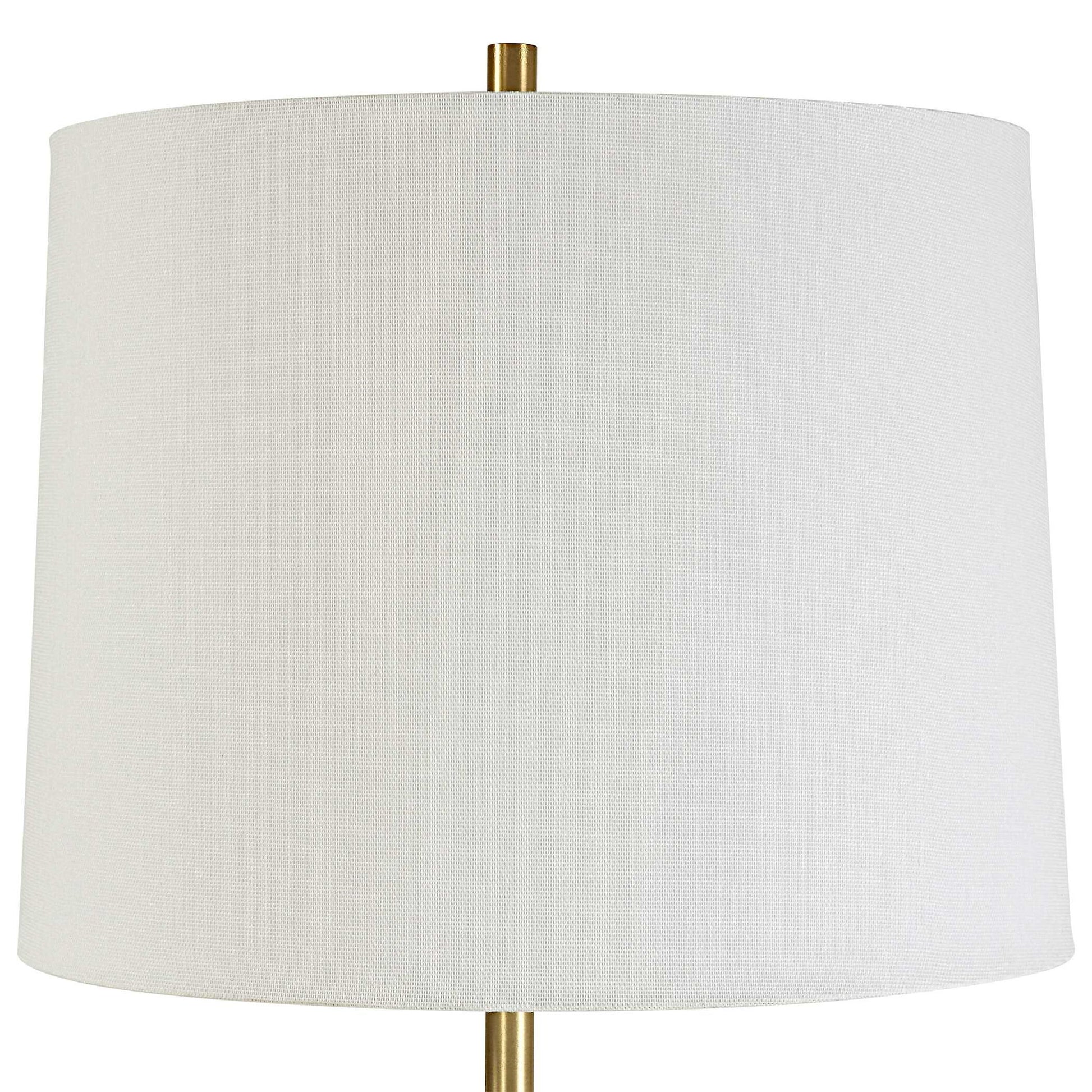 The Kaimana Buffet Lamp Displays A Mottled Aged Blue Drip Glaze With A Seafoam Green Undertone, Paired With Lightly Antiqued Brass Plated Details. The Tapered Round Shade Is A Casual White Linen Fabric With Light Slubbing. Due To The Nature Of Fired Glazes On Ceramic Lamps, Finishes Will Vary Slightly.