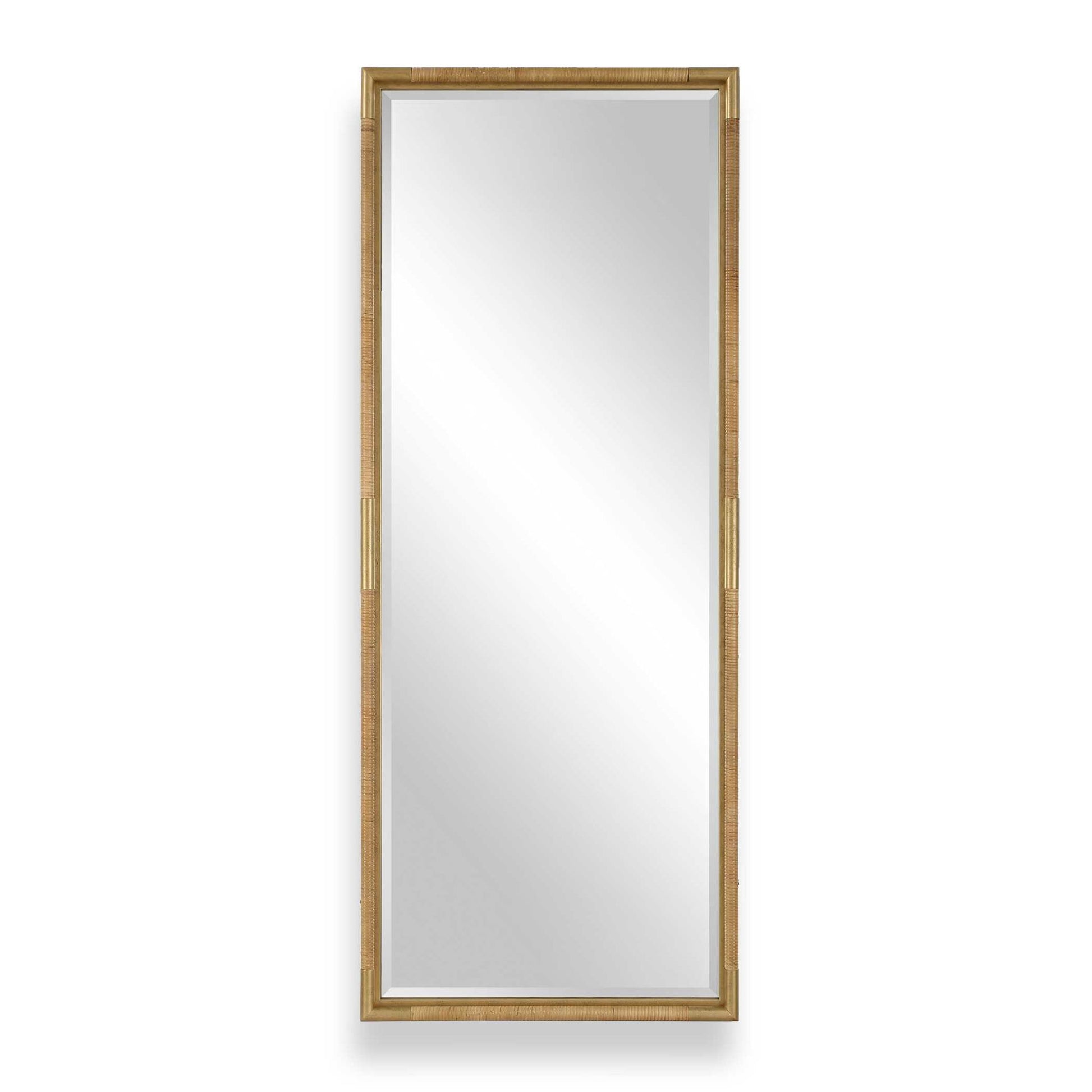 Kampar - Full Length Rattan Tall Mirror - Gold / Woodtone