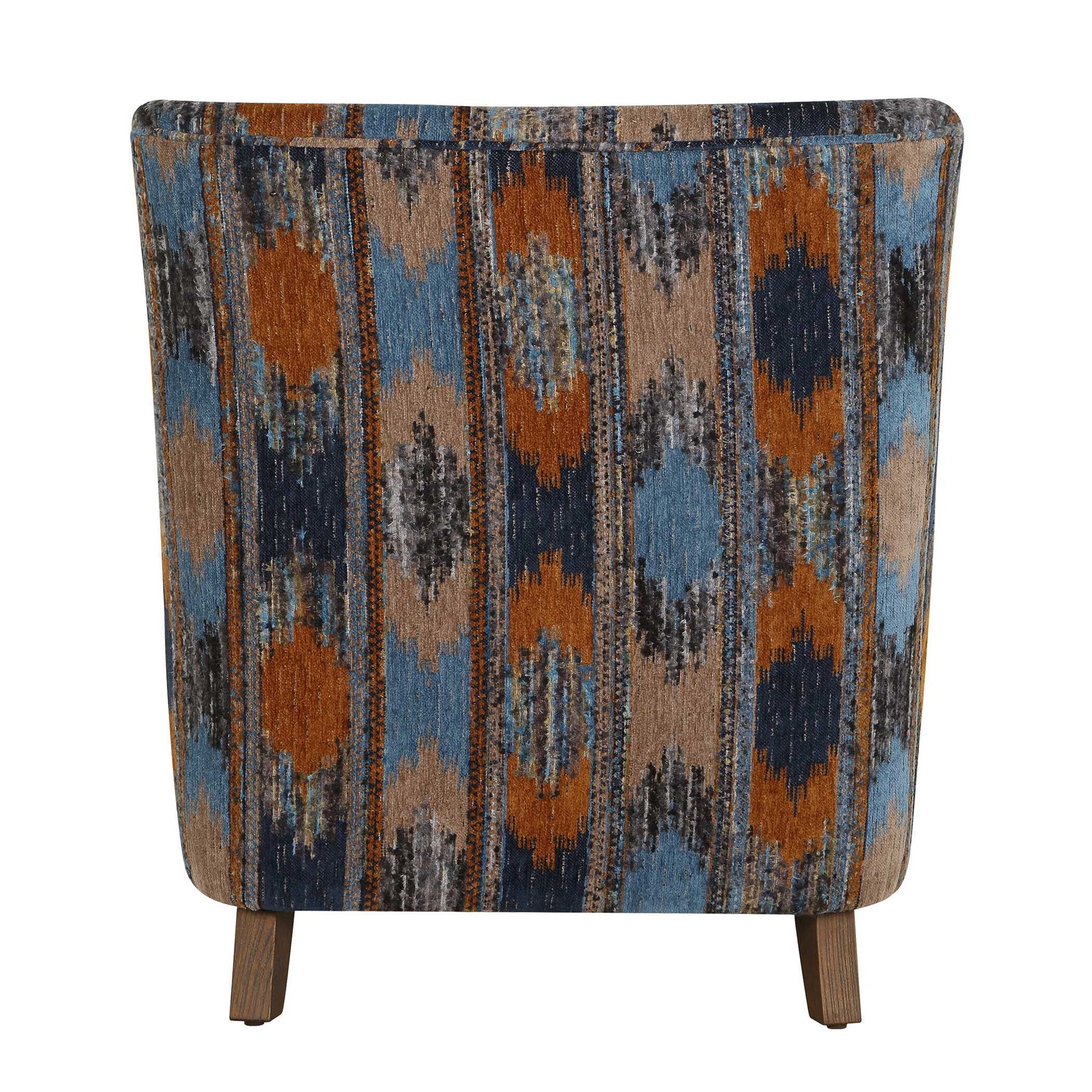 Lainey - Upholstered Ikat Armchair - Blue / Brown / Orange