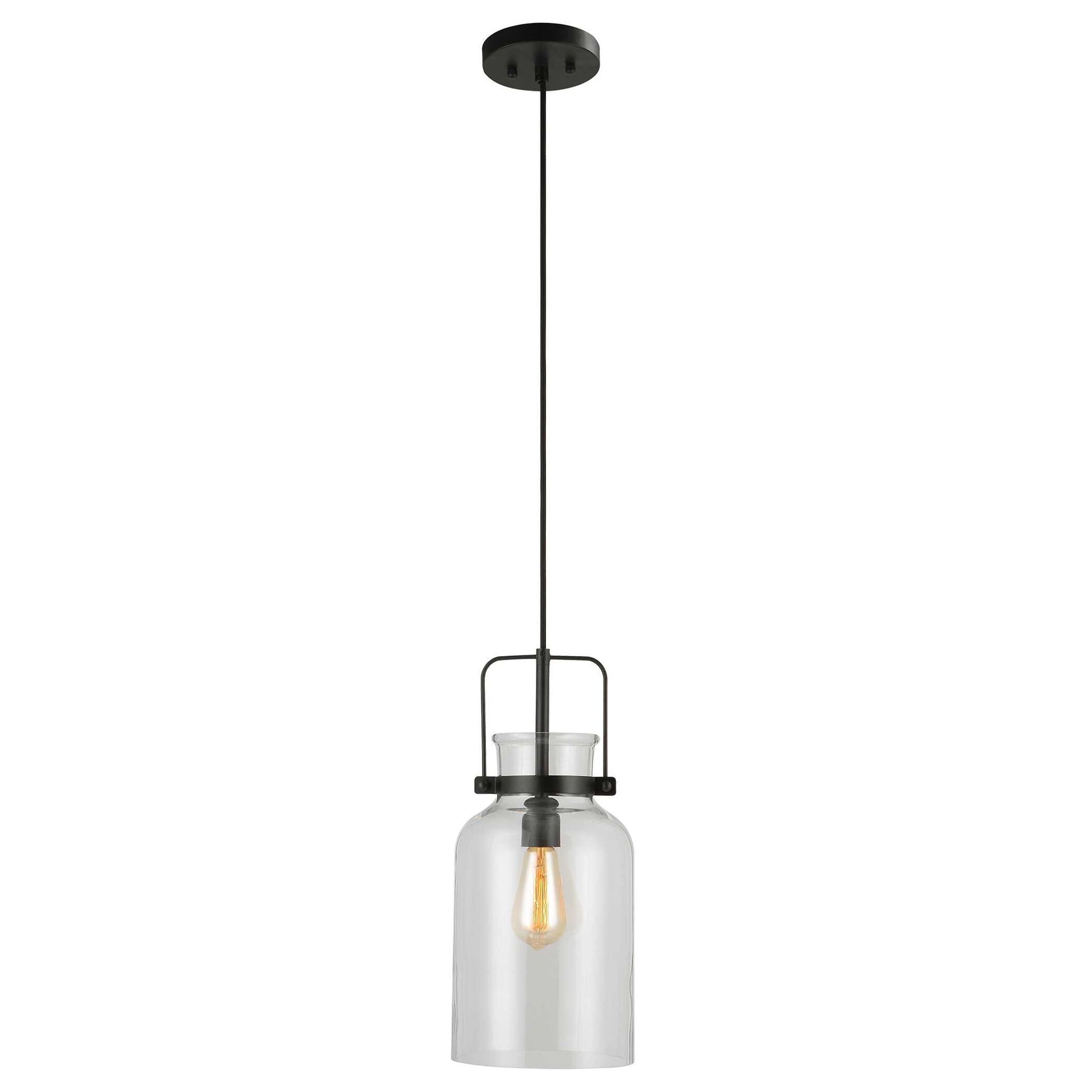 Soft Industrial Simplicity And Farmhouse Charm Give This Mini Pendant A Clean Look. Featuring Clear Glass In A Milk Bottle Shape With A Textured Black Finish. 1-100 Watt Max, Edison Socket. Bulbs Not Included. Supplied With 15' Cord For Adjustable Installation.