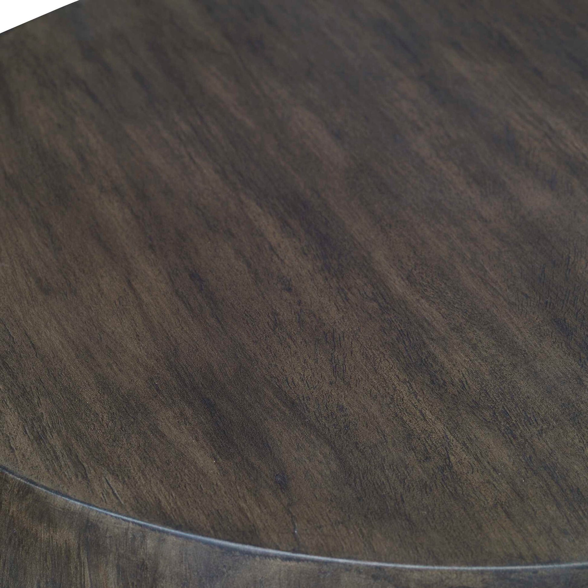 Showcasing A Minimalist Style, This Round End Table Features A Mango Wood Veneer Overlay In A Heavily Textured Aged Walnut Finish.