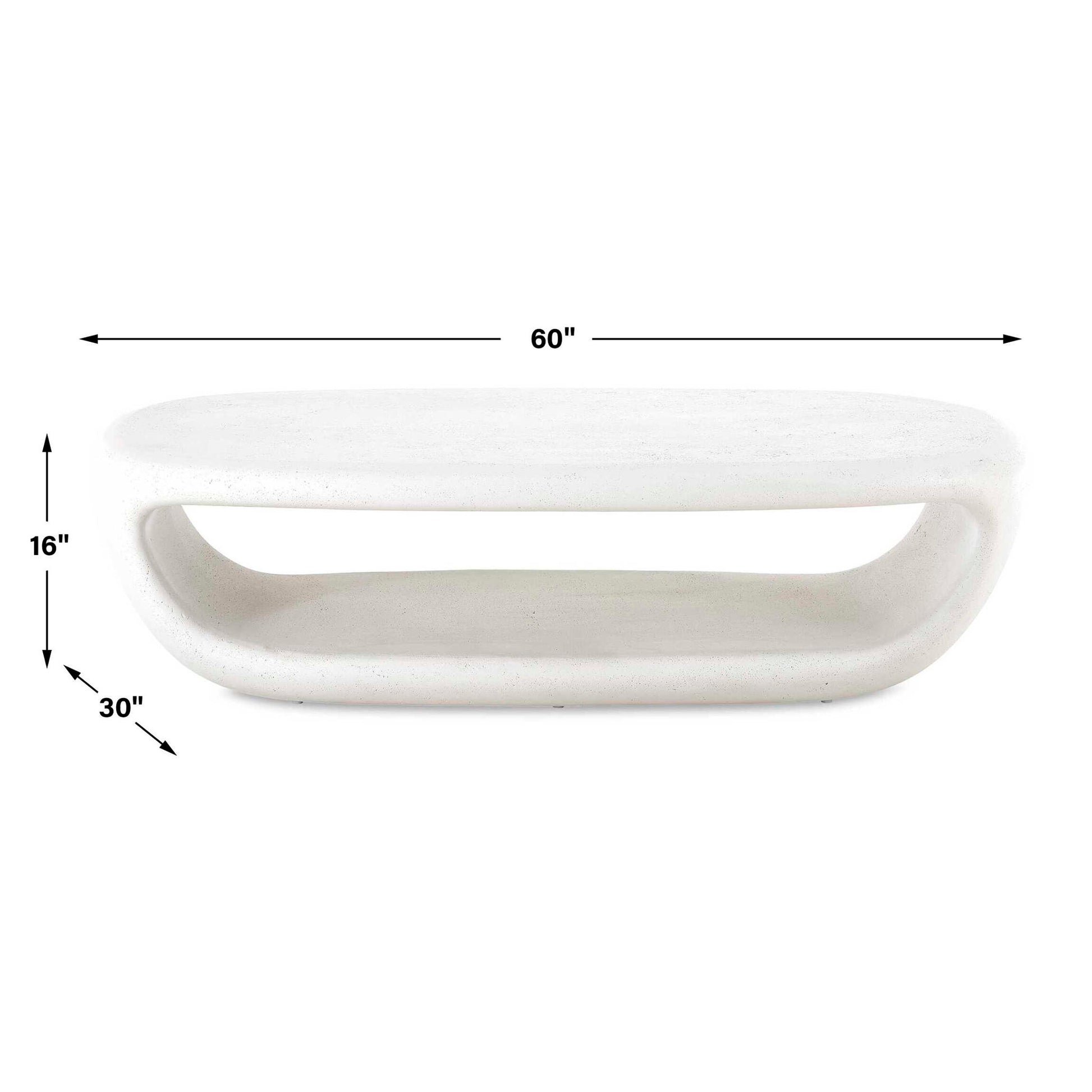 Made From Glass Reinforced Concrete In A Smooth Warm White Finish, This Coffee Table Boasts A Bold Silhouette Which Incorporates A Hollow Center, Providing Ample Storage. Suitable For Both Indoor And Outdoor Use.
