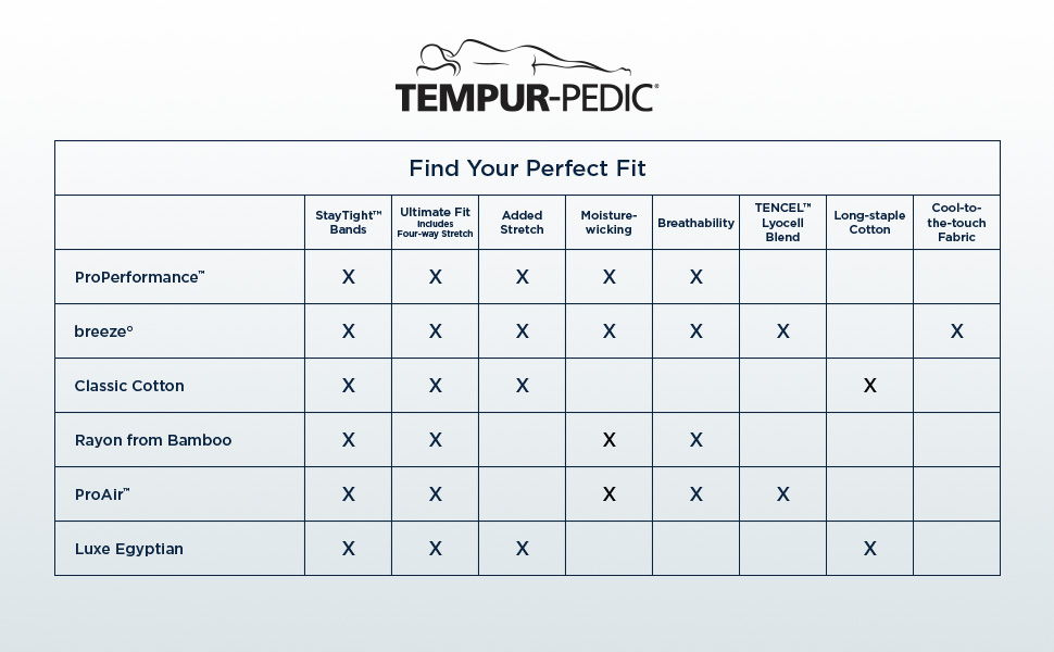 - Sheets are designed to complement and not interfere with Tempur-Pedic breeze cooling technology
