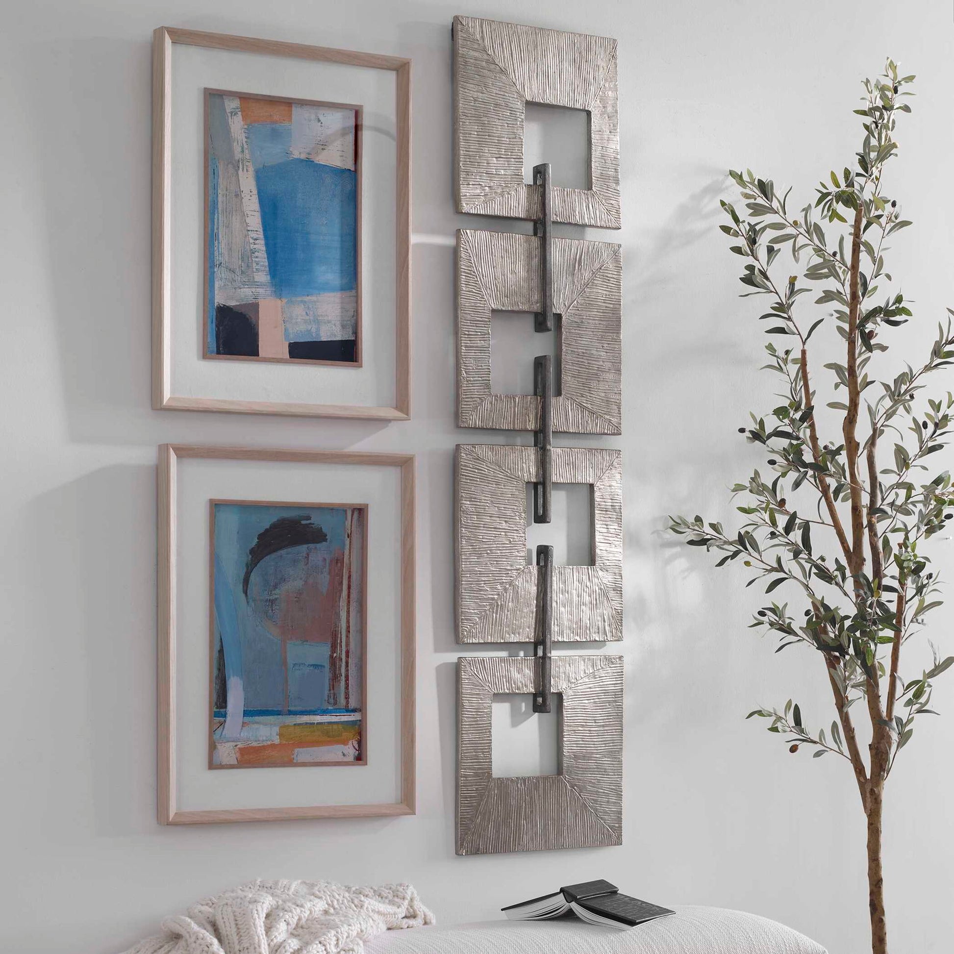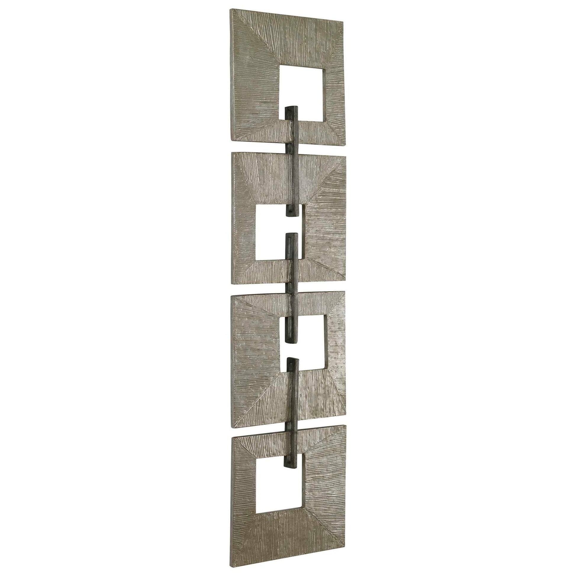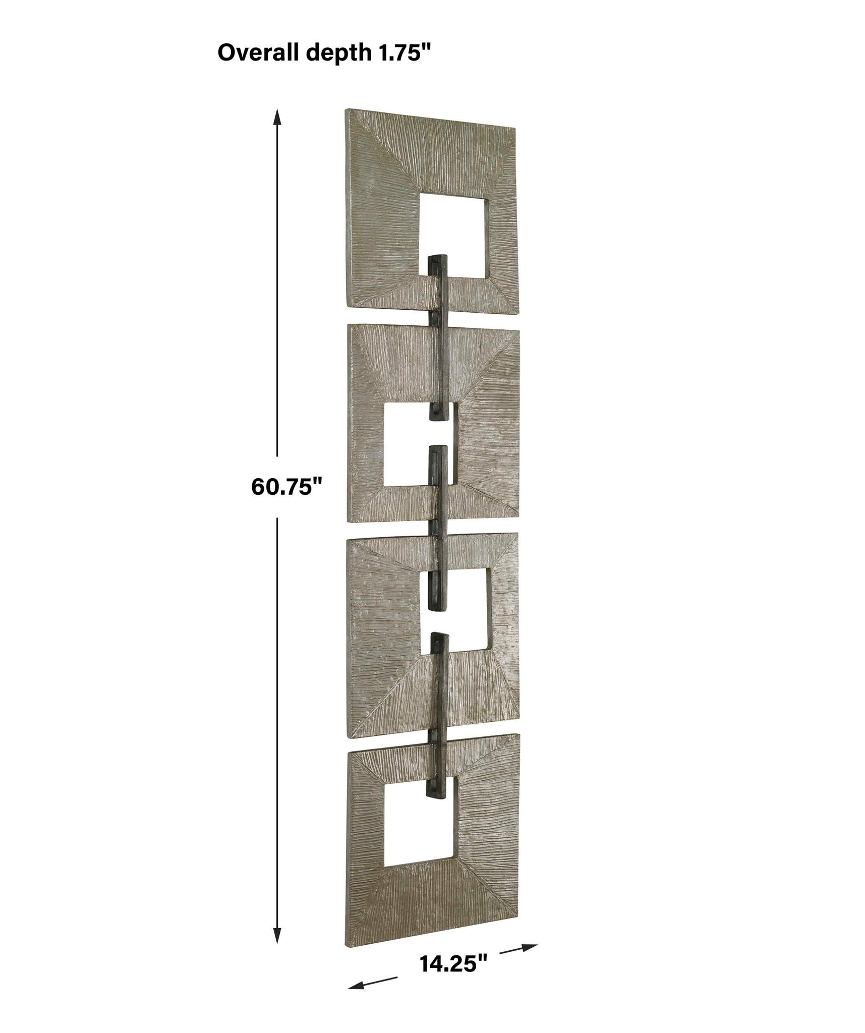 A Textural Showpiece, The Linked Wall Panel Features Ridged Metal Sheeting In A Champagne Gold Finish Connected By Iron Bars In Heavily Aged Silver. Group Multiples Together For A More Dramatic Installation. May Be Hung Horizontally Or Vertically.