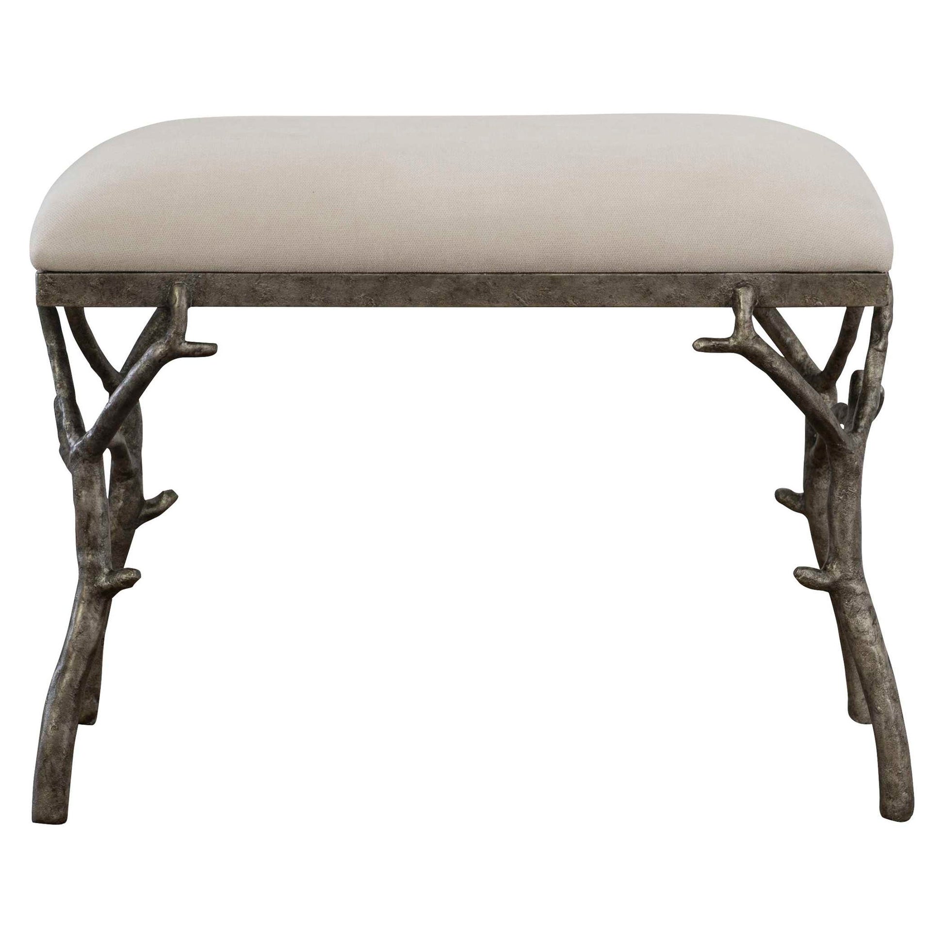 Make A Whimsical Statement With This Molded Branch Accent Bench Featuring A Heavily Textured Antique Silver Finish, Tailored In An Off-white Polyester Fabric.