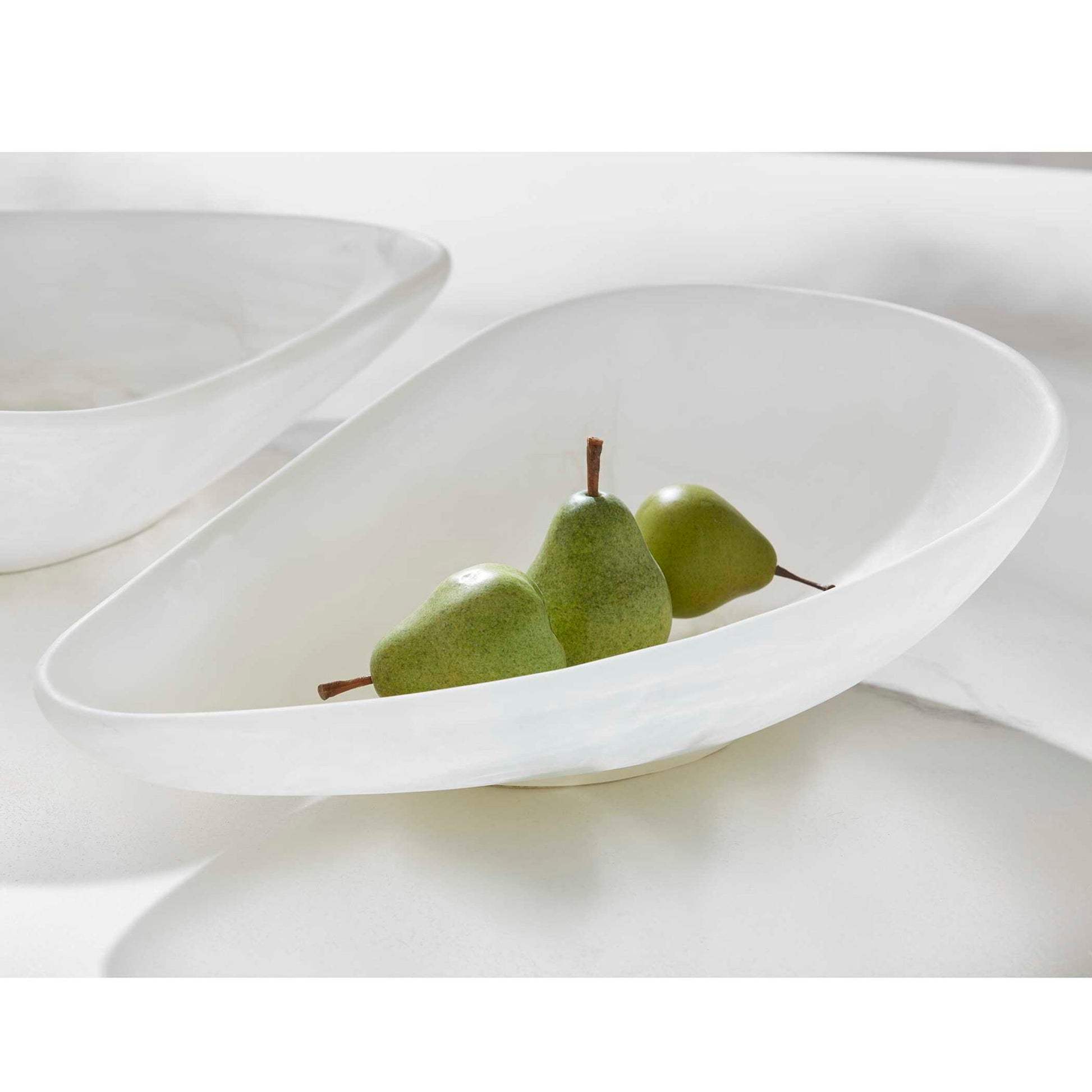 The Beauty Of The Marchena Bowl Is Its Organic Shape And Marbleized Finish. The Swirl Finish Consists Of Whites And Clear All Organically Swirled Together. Due To The Handcrafted Nature Of This Piece Each Item Will Vary.